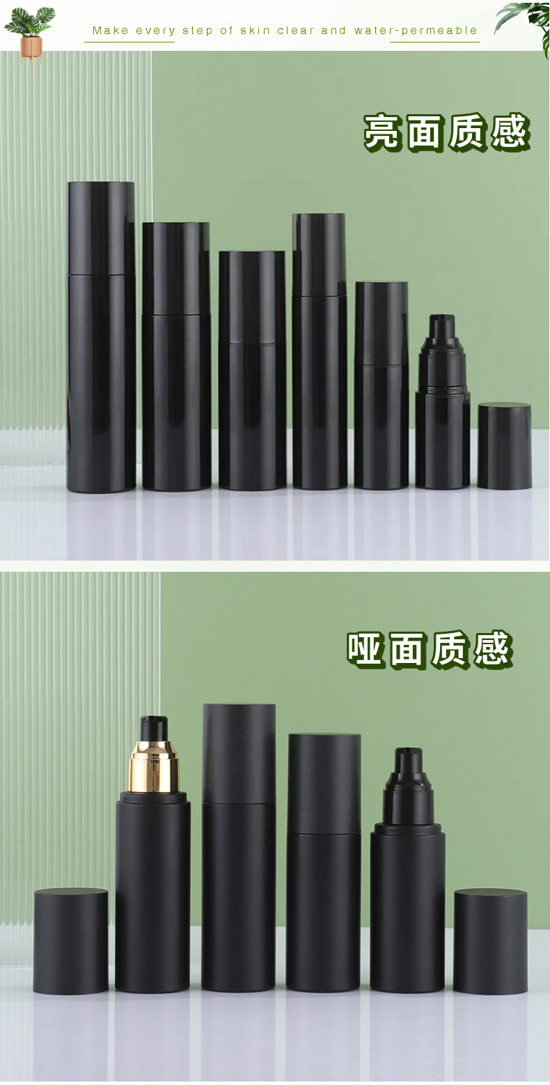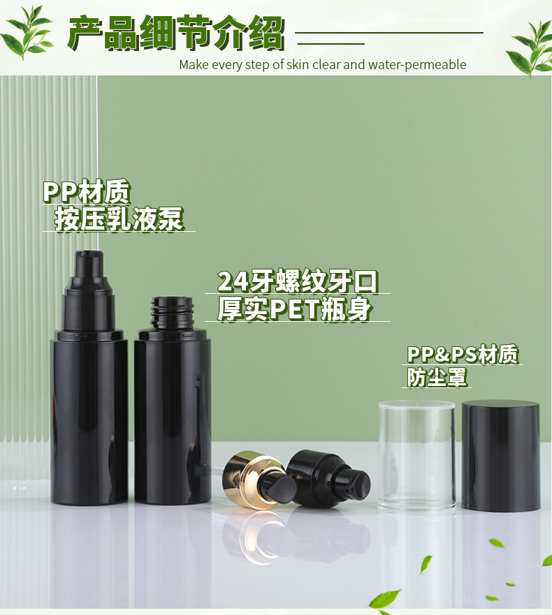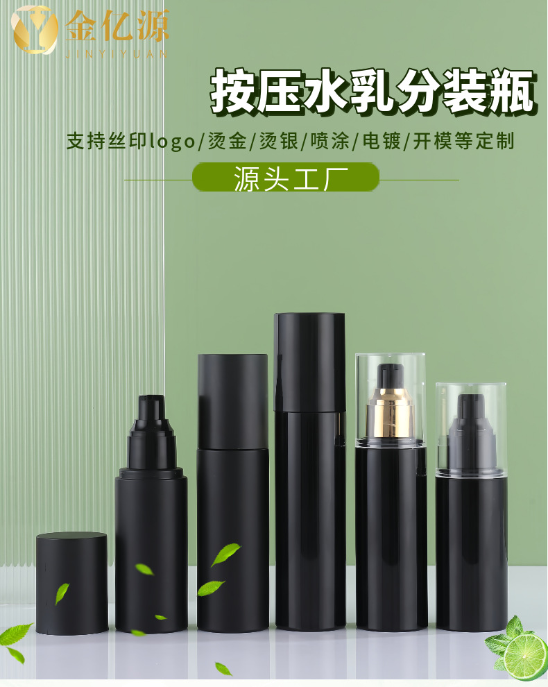 现货黑色乳液按压瓶100ml水乳分装瓶50ml化妆品小黑瓶黑发精油瓶