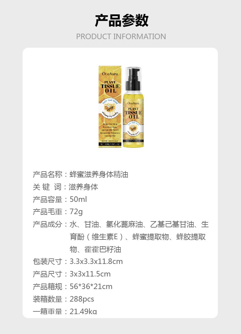 OCEAURA 蜂蜜精油 保湿亲肤柔嫩清爽不粘腻易吸收温和细腻轻盈油,批发价,价格:8,厂家直销,OCEAURA 蜂蜜精油 保湿亲肤柔嫩清爽不粘腻易吸收温和细腻轻盈油,免费拿样。