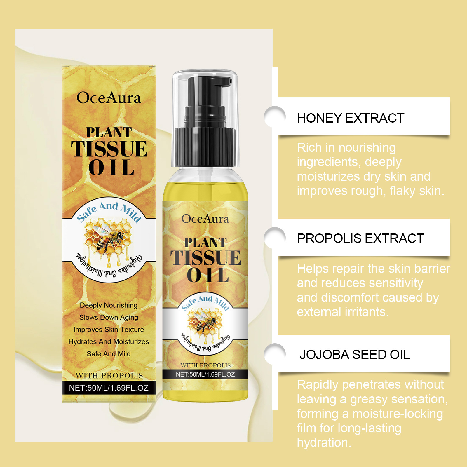 OCEAURA 蜂蜜精油 保湿亲肤柔嫩清爽不粘腻易吸收温和细腻轻盈油