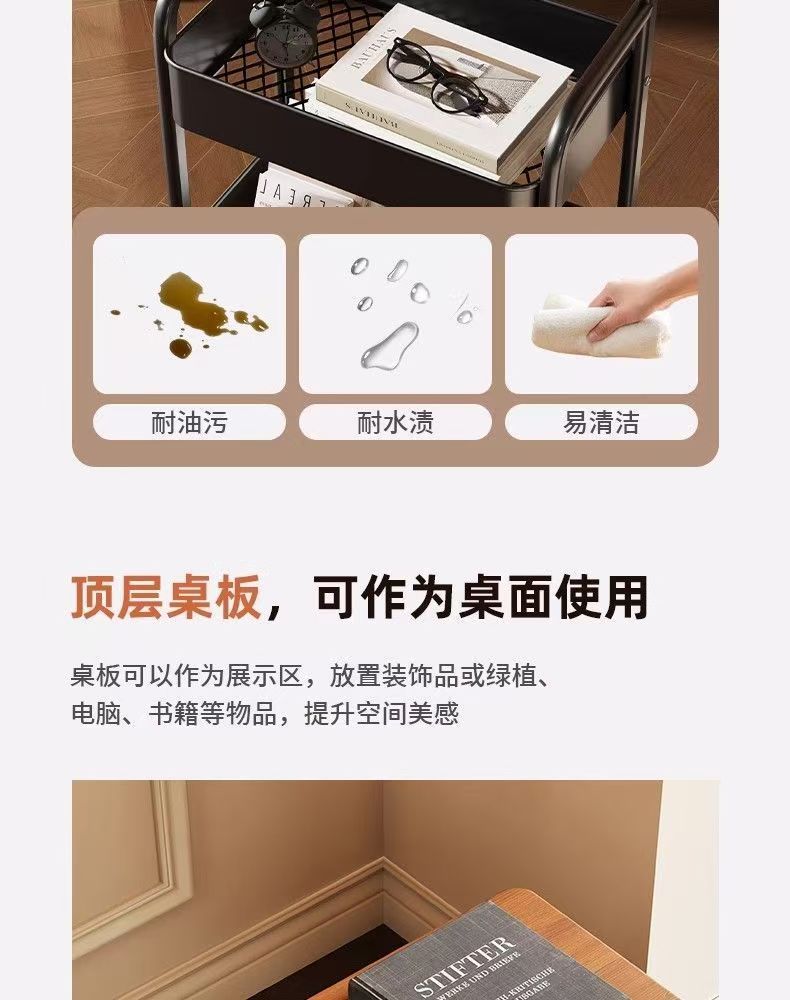 小推车置物架客厅双层零食储物收纳架厨房落地可移动带桌板小推车