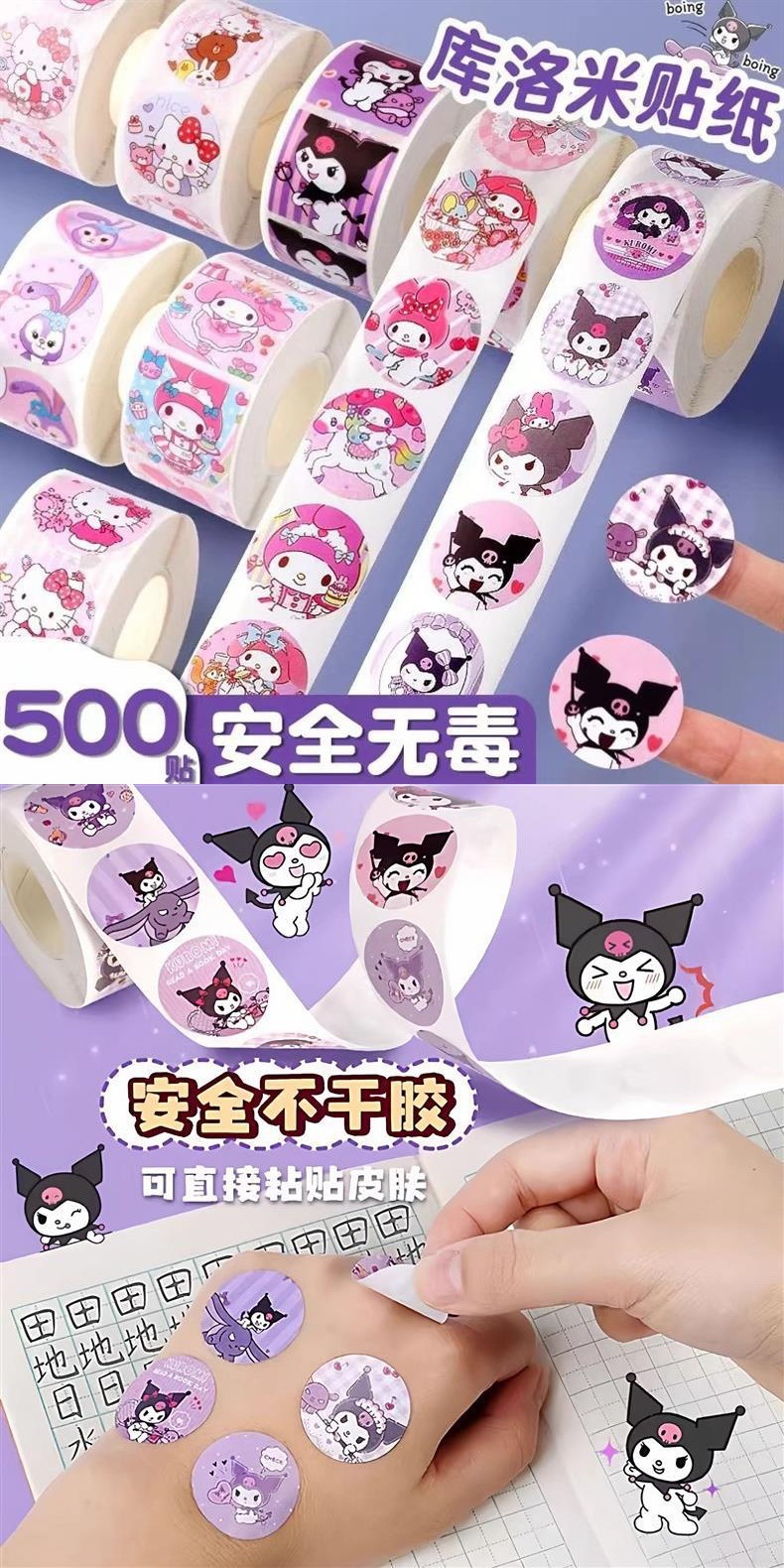 500贴/卷卡通可爱少女心库洛米卷卷贴纸ins高颜值美乐蒂装饰素材,批发价,价格:0.9,厂家直销,500贴/卷卡通可爱少女心库洛米卷卷贴纸ins高颜值美乐蒂装饰素材,免费拿样。
