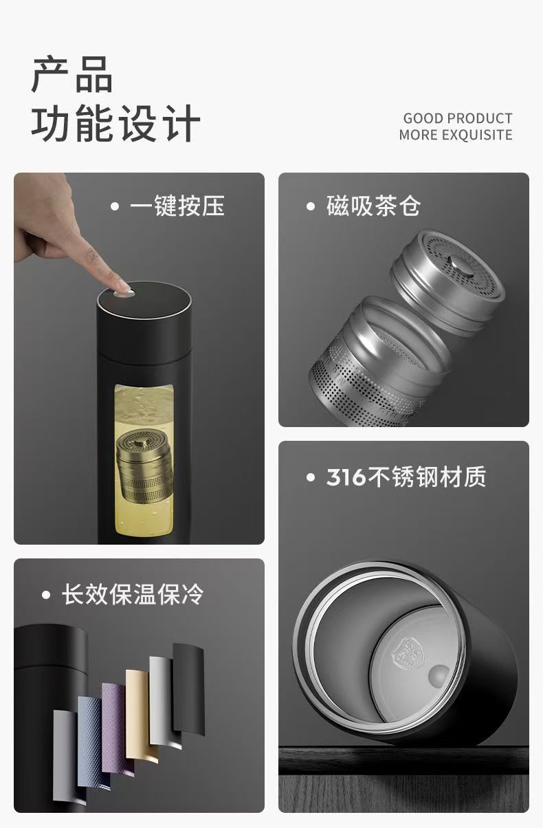 磁吸盖大容量保温杯茶水分离316不锈钢车载便捷商务泡茶保温水杯