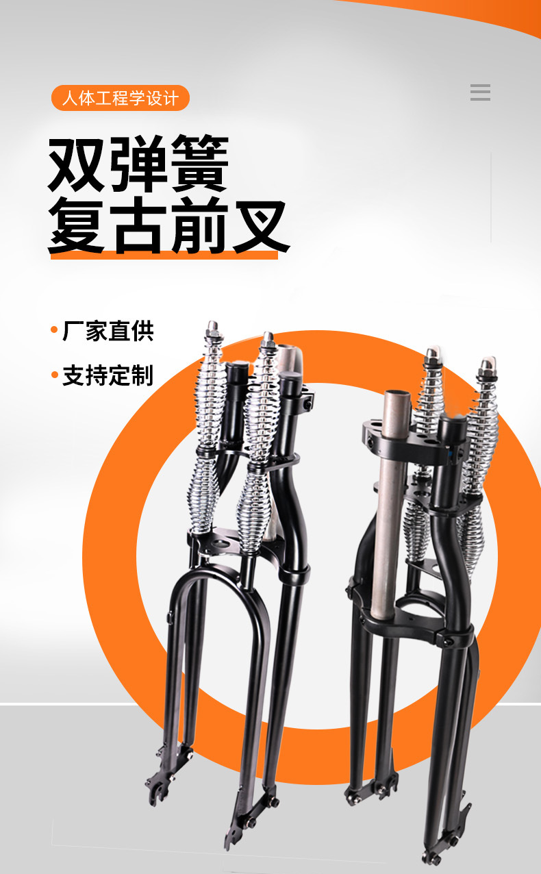 山地自行车双弹簧复古前叉 自行车双肩前叉前避震器弹簧减震车叉
