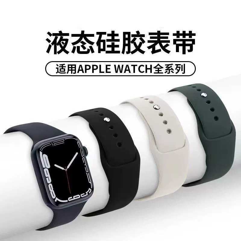 适用苹果智能手表华强北S6S8S9S10智能运动手表液态硅胶表带碗带