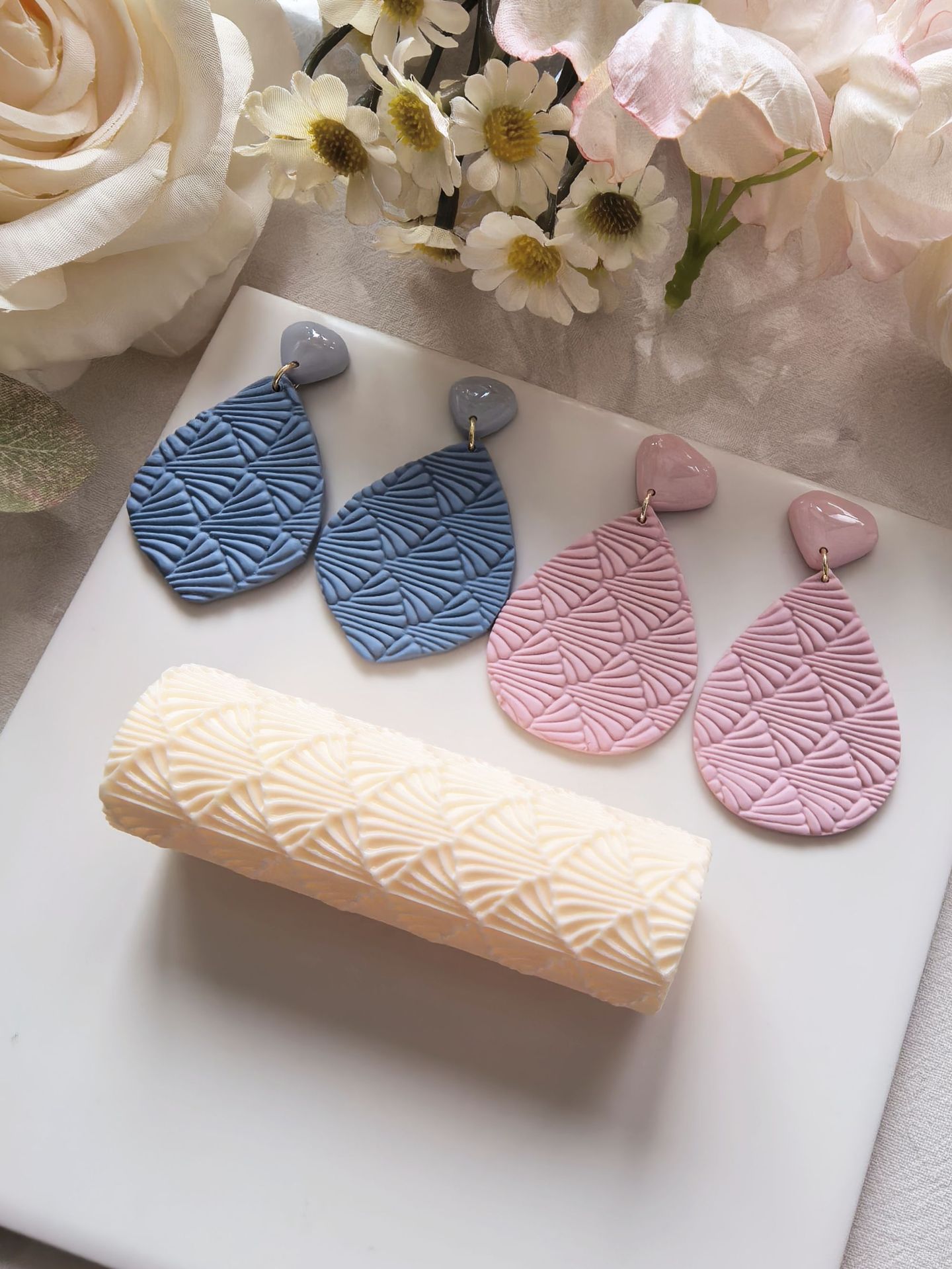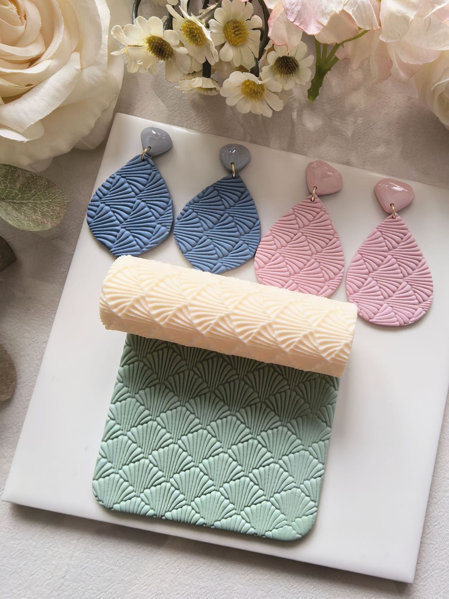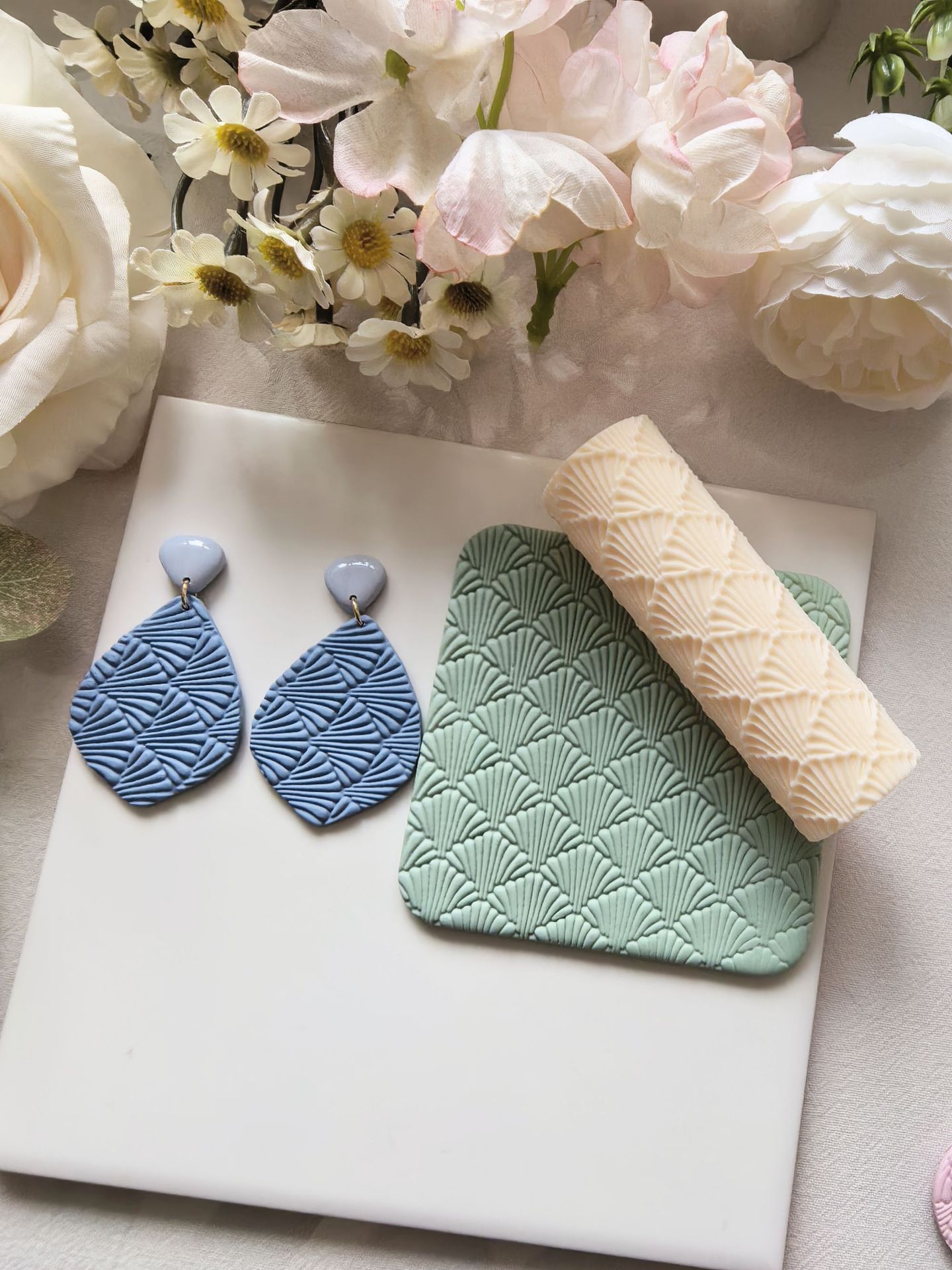 跨境扇形贝壳纹理软陶粘土滚轴 高精度肌理滚轴DIY耳饰珠宝制作