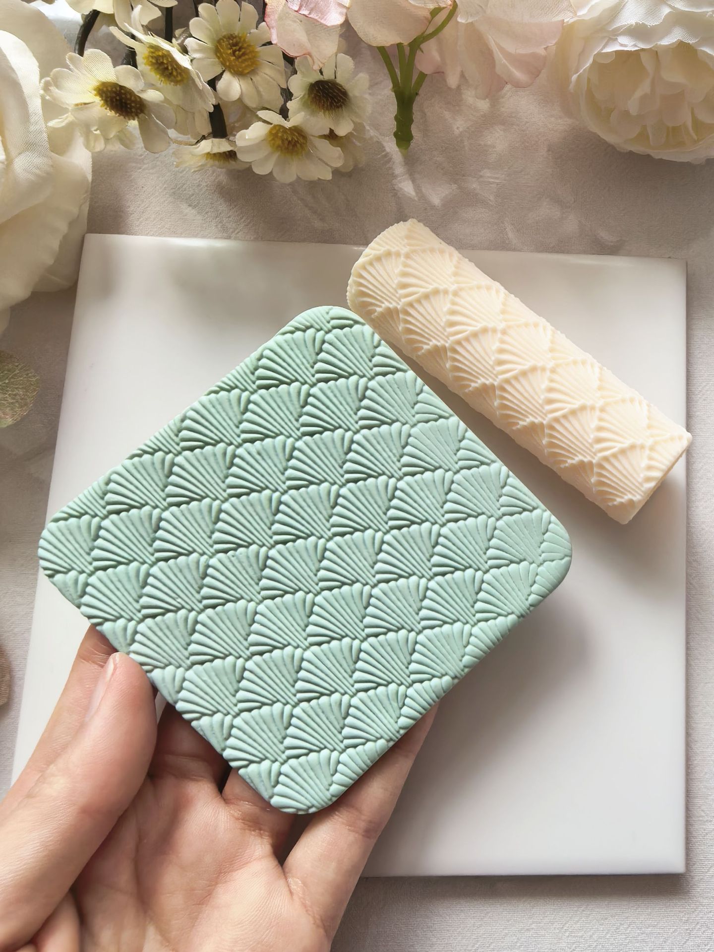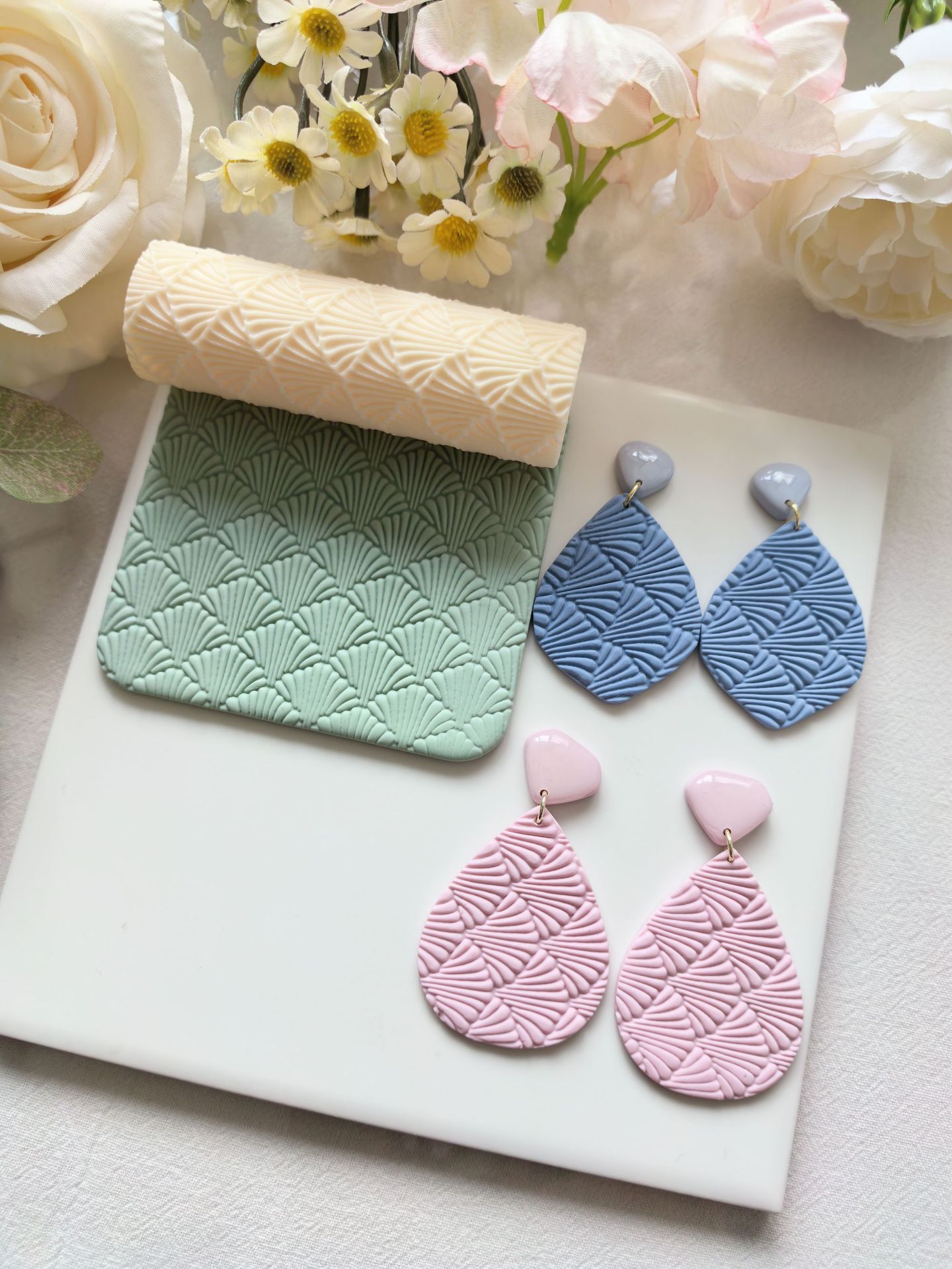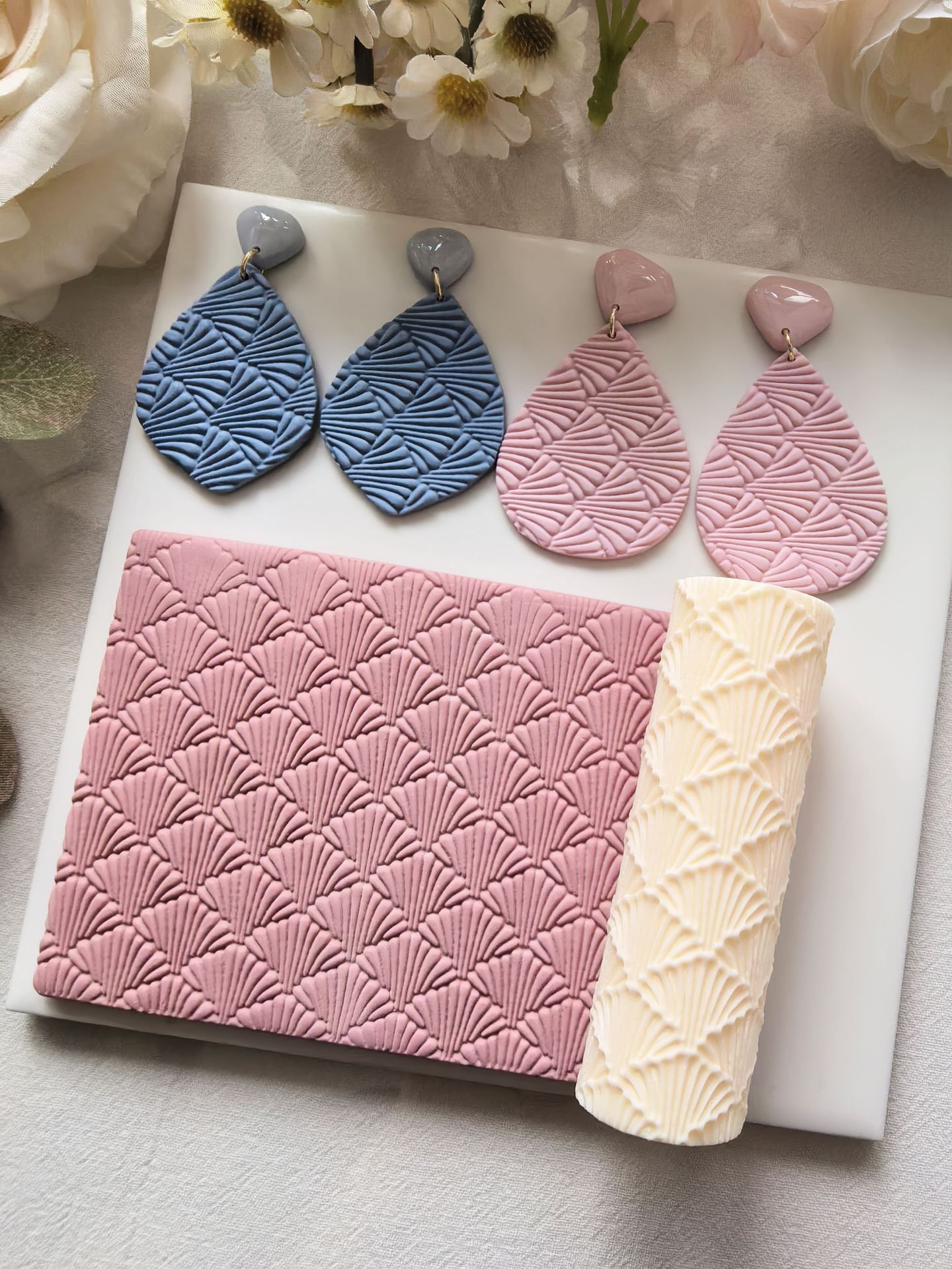 跨境扇形贝壳纹理软陶粘土滚轴 高精度肌理滚轴DIY耳饰珠宝制作