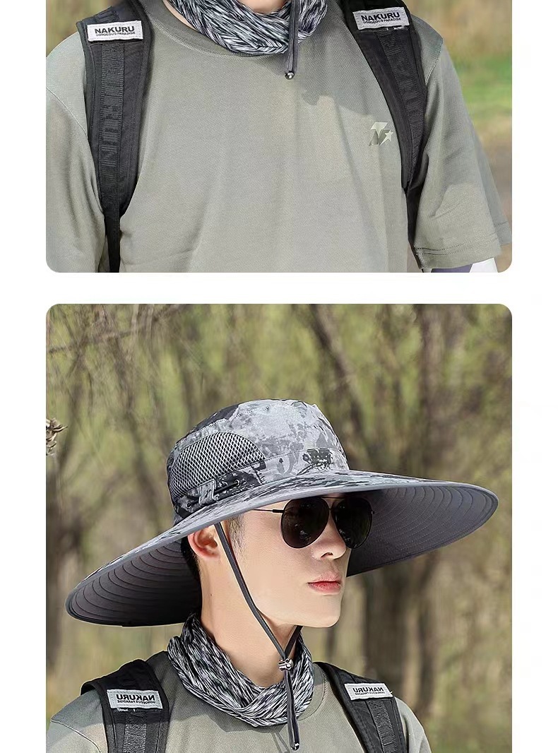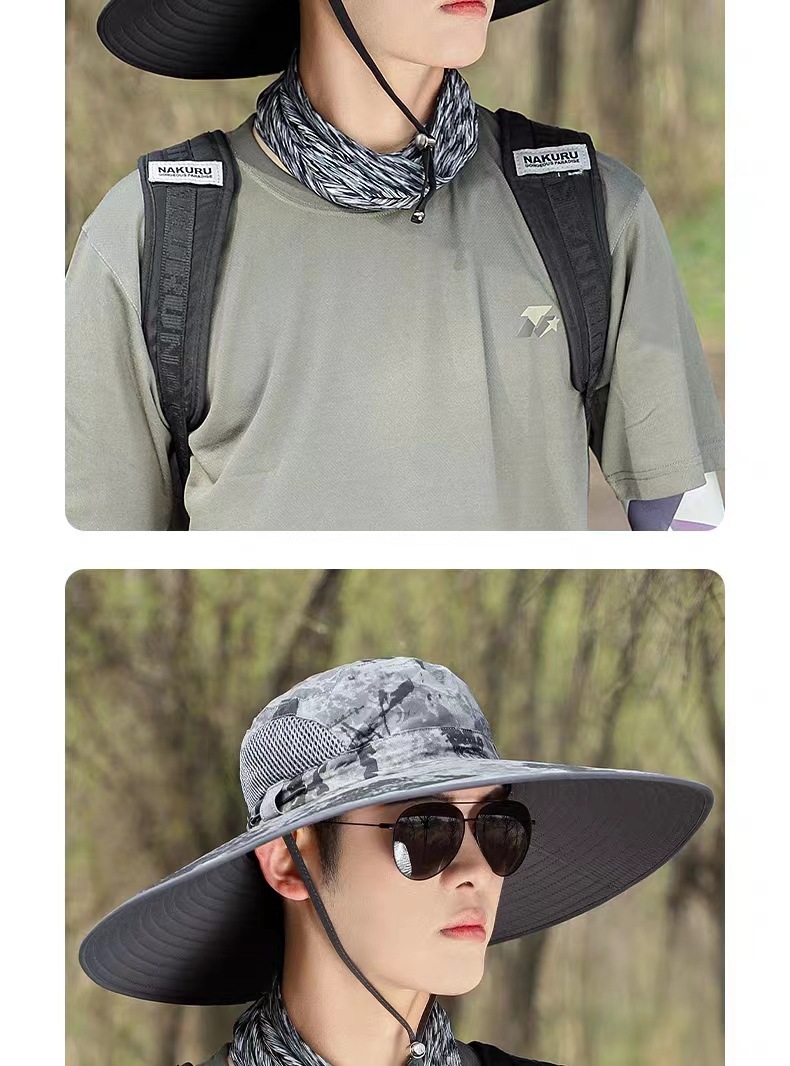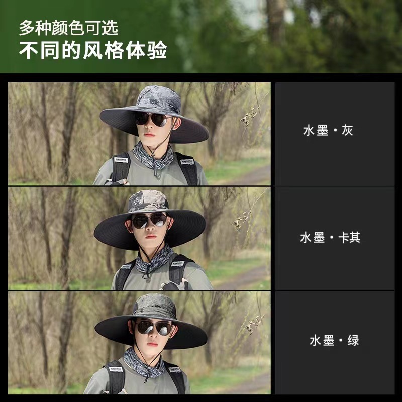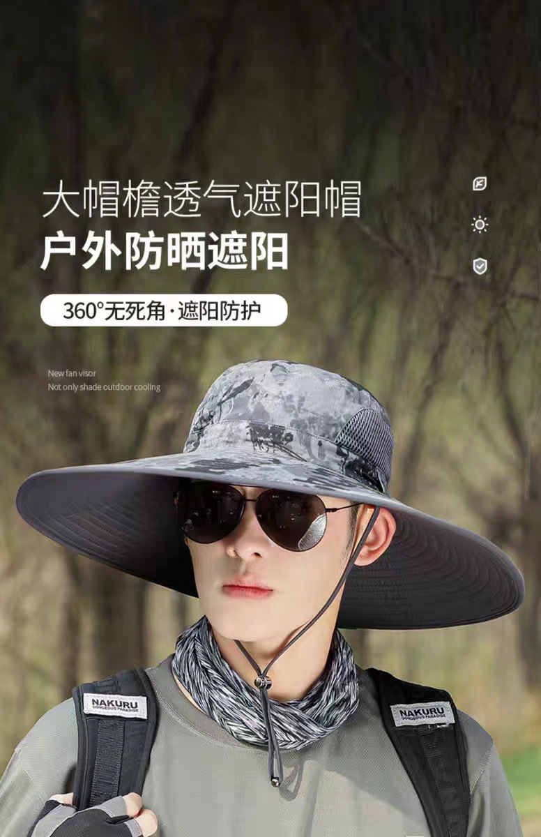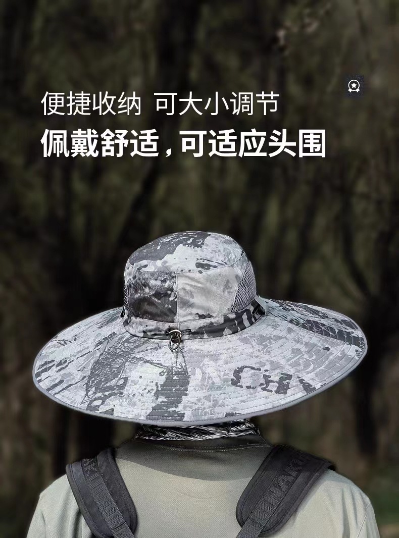 夏季新款男帽户外遮阳帽15厘米迷彩大檐钓鱼帽防晒帽登山太阳帽
