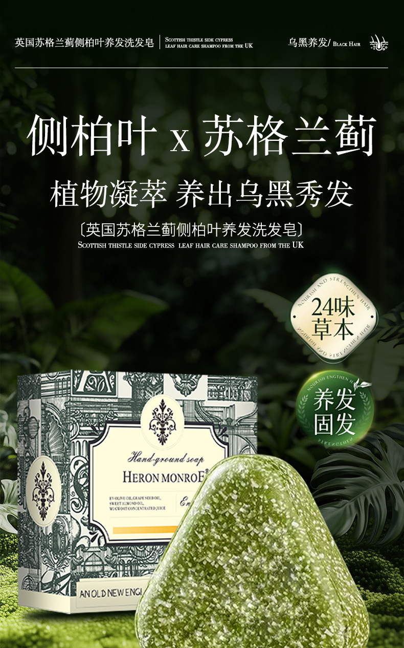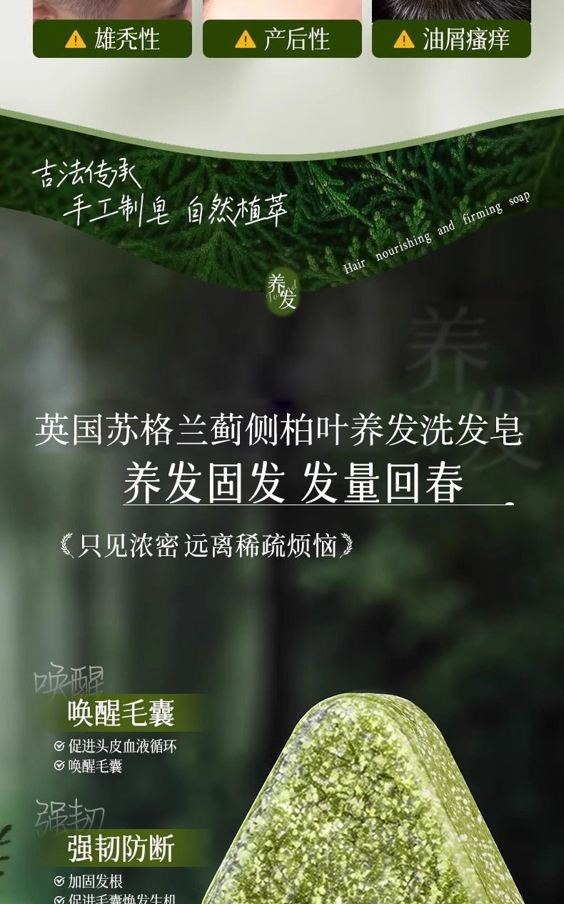 侧柏叶乌斯曼洗发皂草本养发氨基酸手工皂洗发饼精油皂洗头皂清香