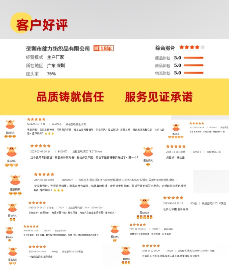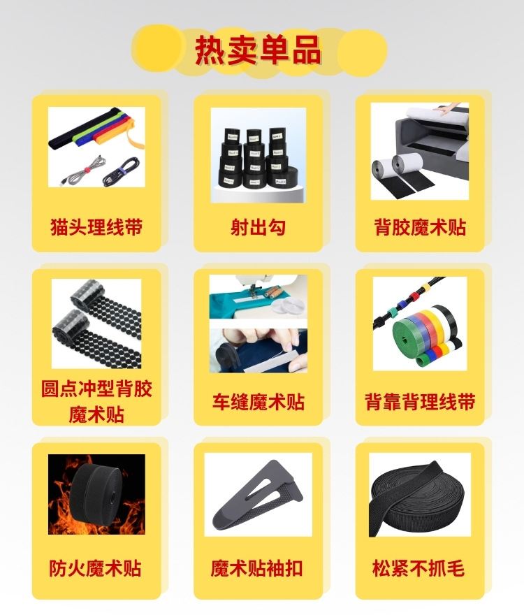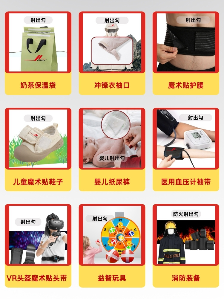 推荐理由:实力工厂直供射出勾魔术贴,尼龙材质坚韧耐用,单面勾面粘贴稳固且剥离便捷。支持车缝加工,适配医疗、智能穿戴、户外、汽车用品、清洁用品、宠物用品等用途广泛,性价比高。