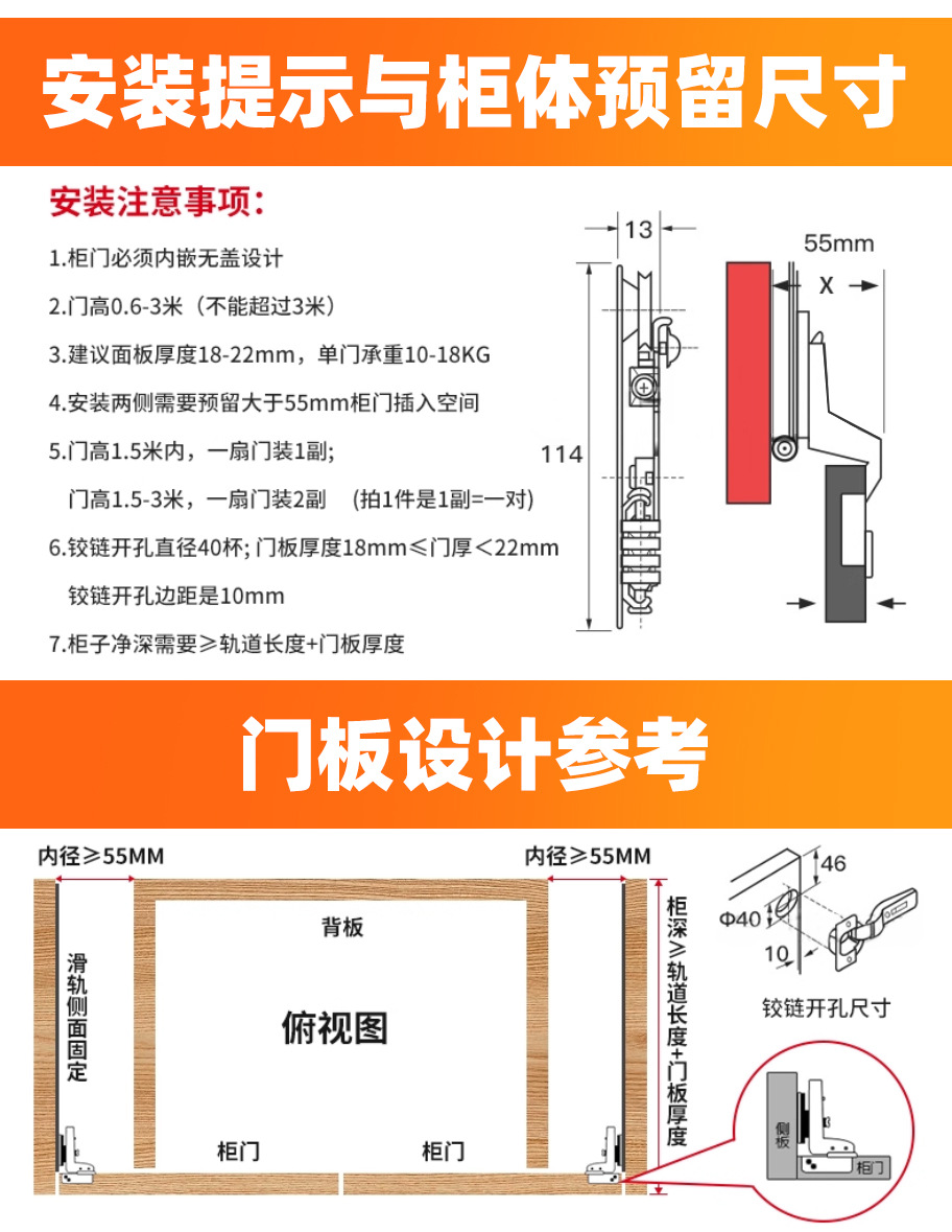 家用静音轨道隐藏式重型回旋门滑轨衣柜抽拉隐形上翻门顶转导轨