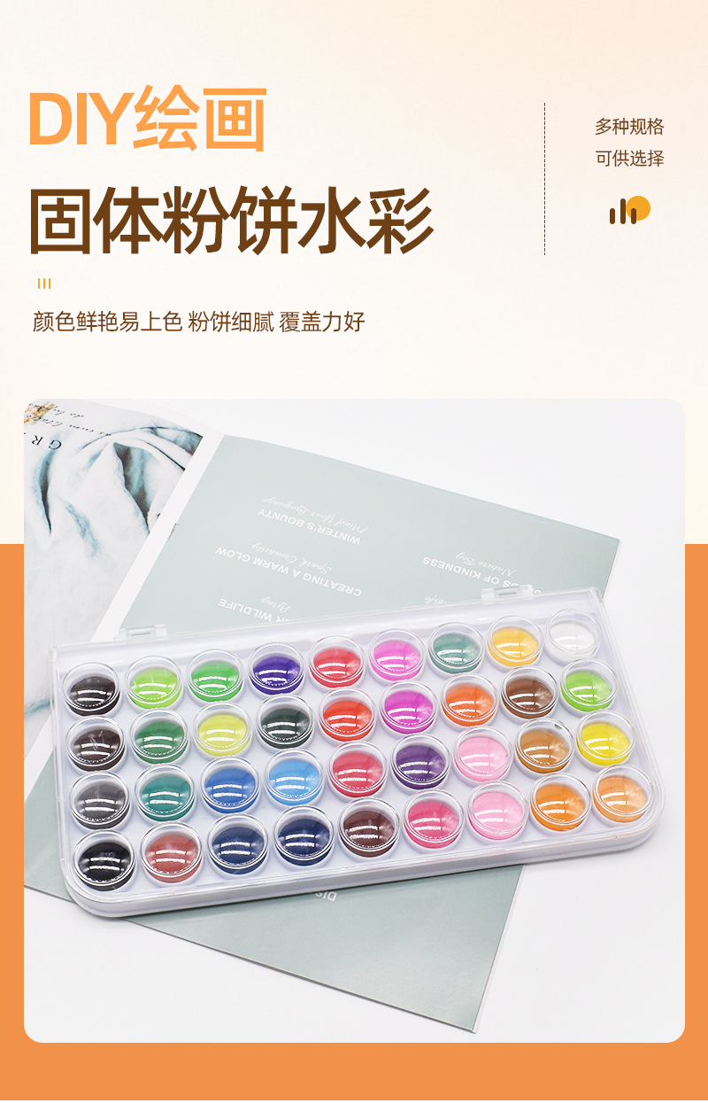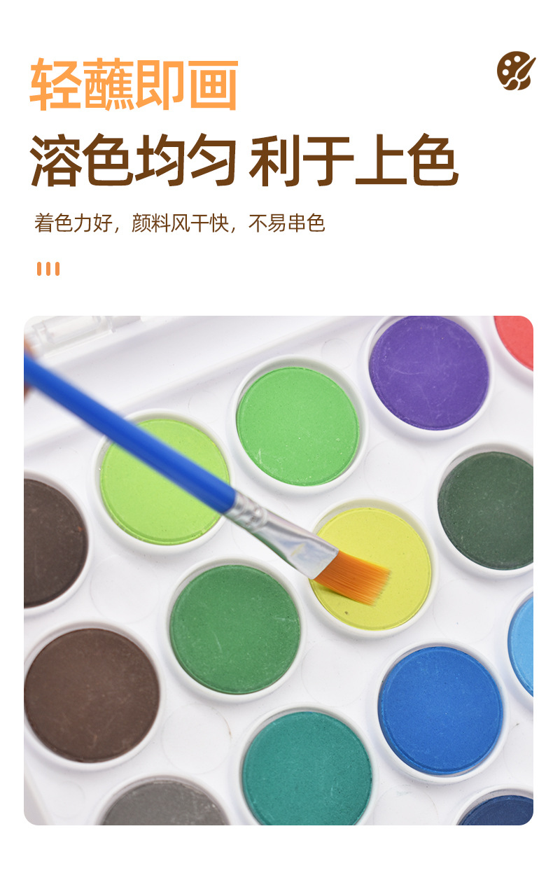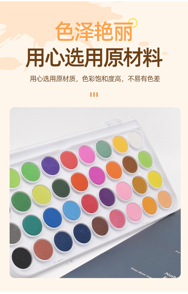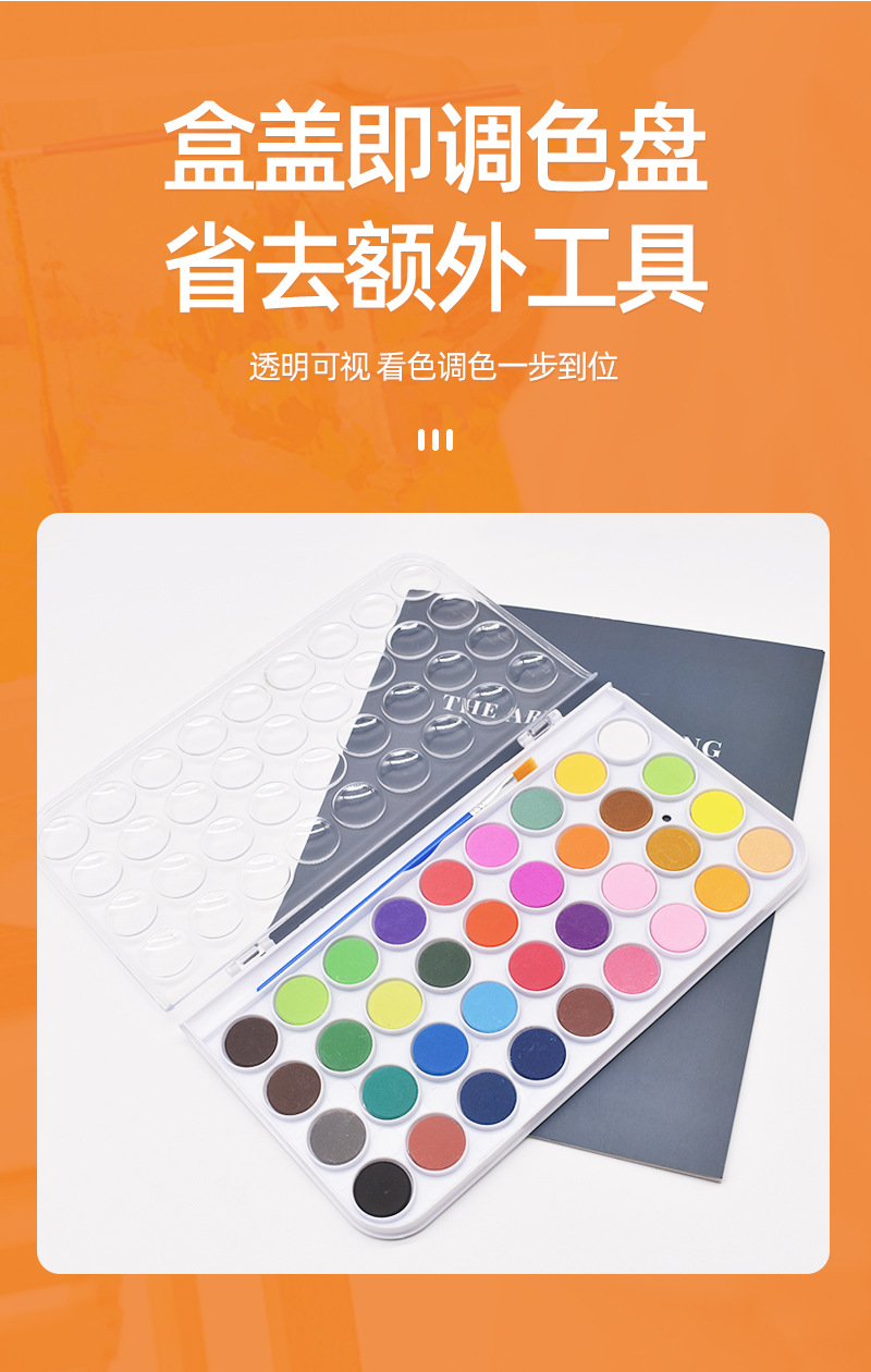 36色固体水彩画颜料软头水彩笔套装储水毛笔儿童固体粉饼美术颜料