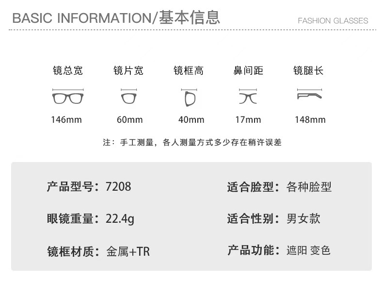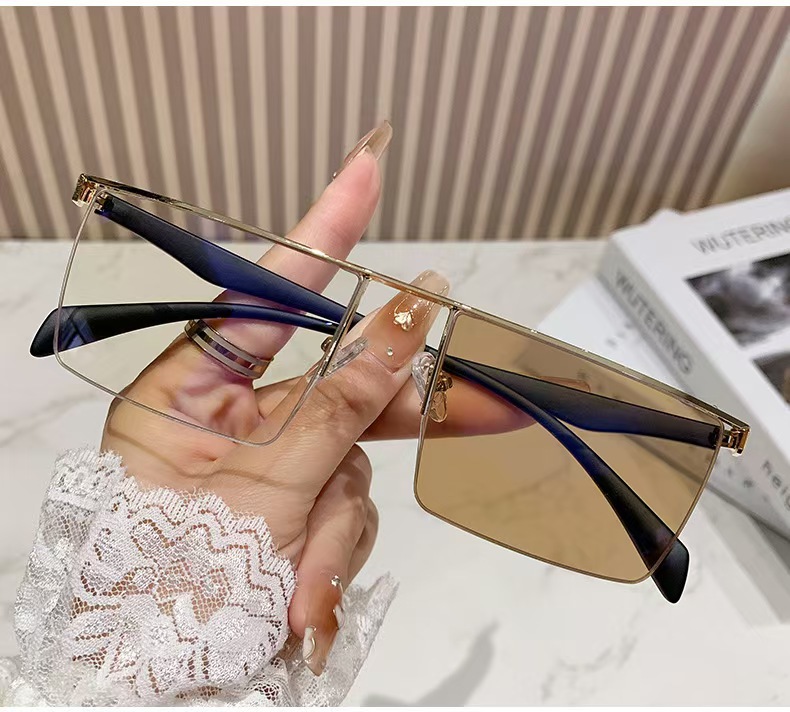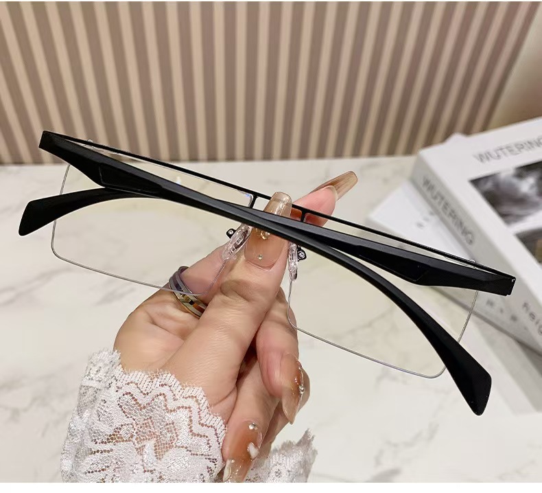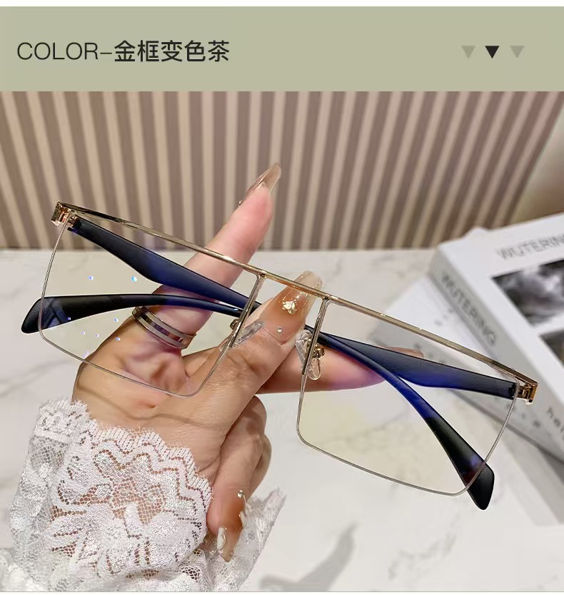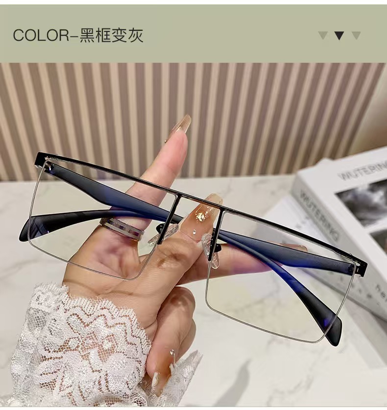 金属新款男士商务半框近视眼镜框防蓝光辐射变色合金镜 架 8332