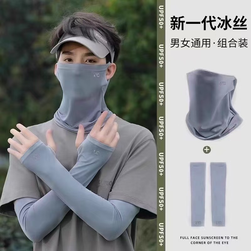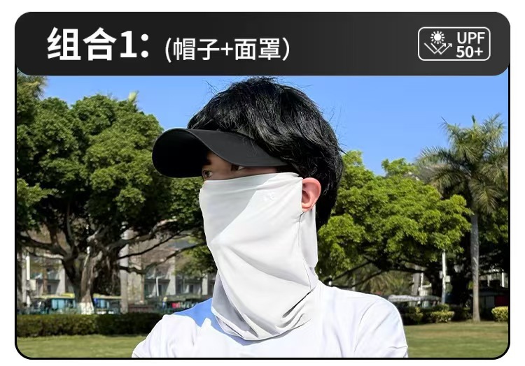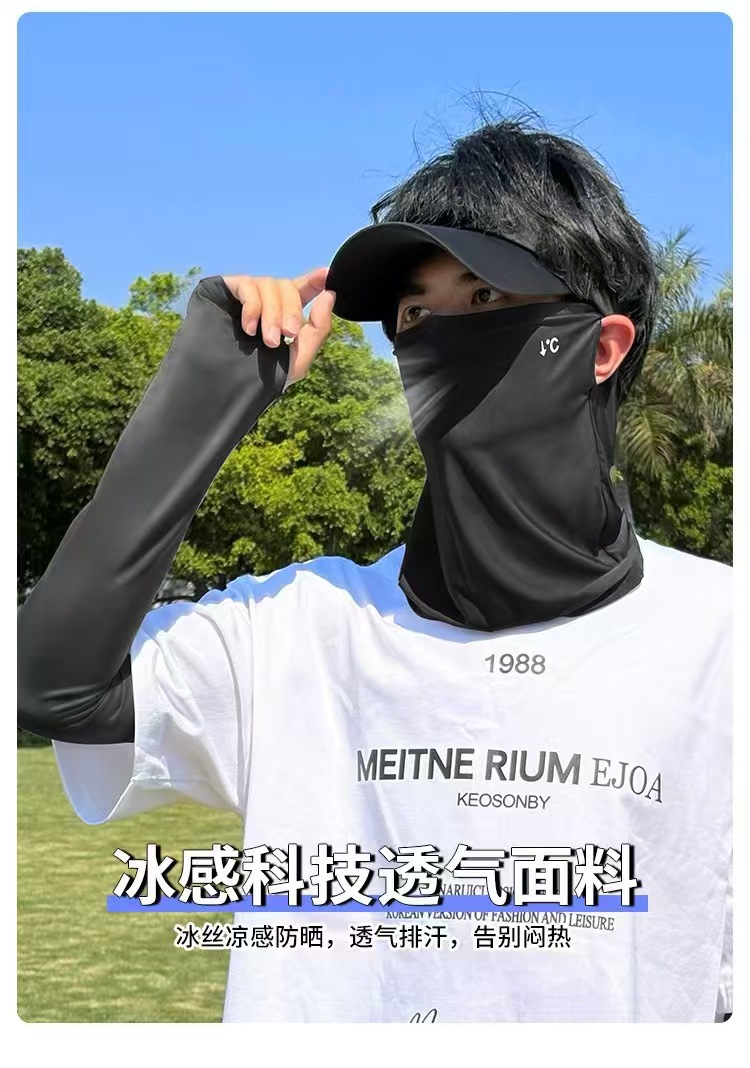 防晒面罩防紫外线骑行遮脸护颈户外一体男女同口罩冰丝透气三套装