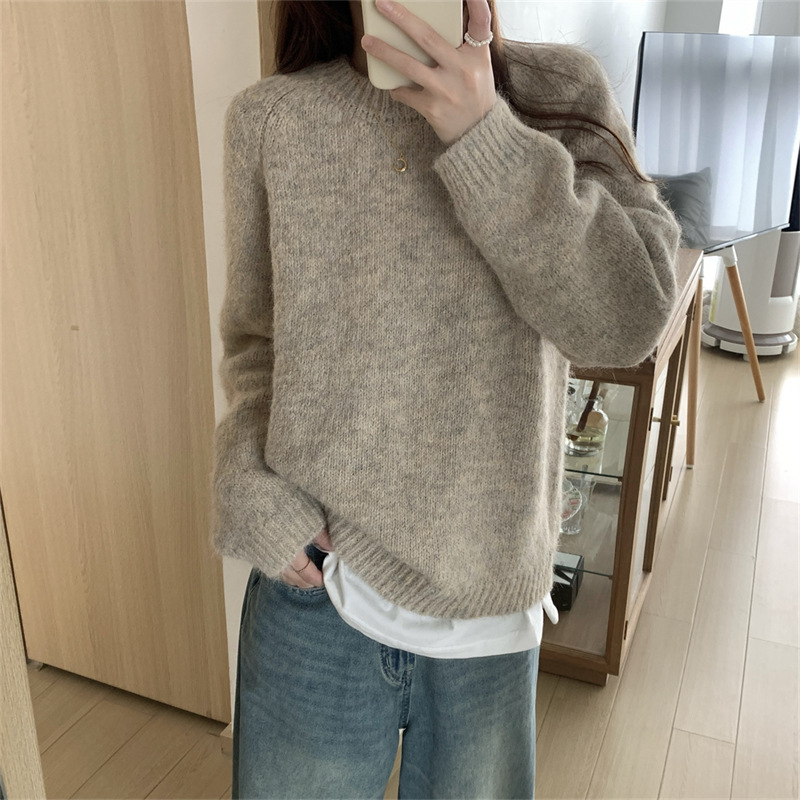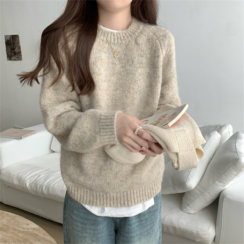 软糯温柔慵懒风毛衣女秋冬季新款韩系宽松内搭圆领套头针织衫上衣,批发价,价格:43,厂家直销,软糯温柔慵懒风毛衣女秋冬季新款韩系宽松内搭圆领套头针织衫上衣,免费拿样。