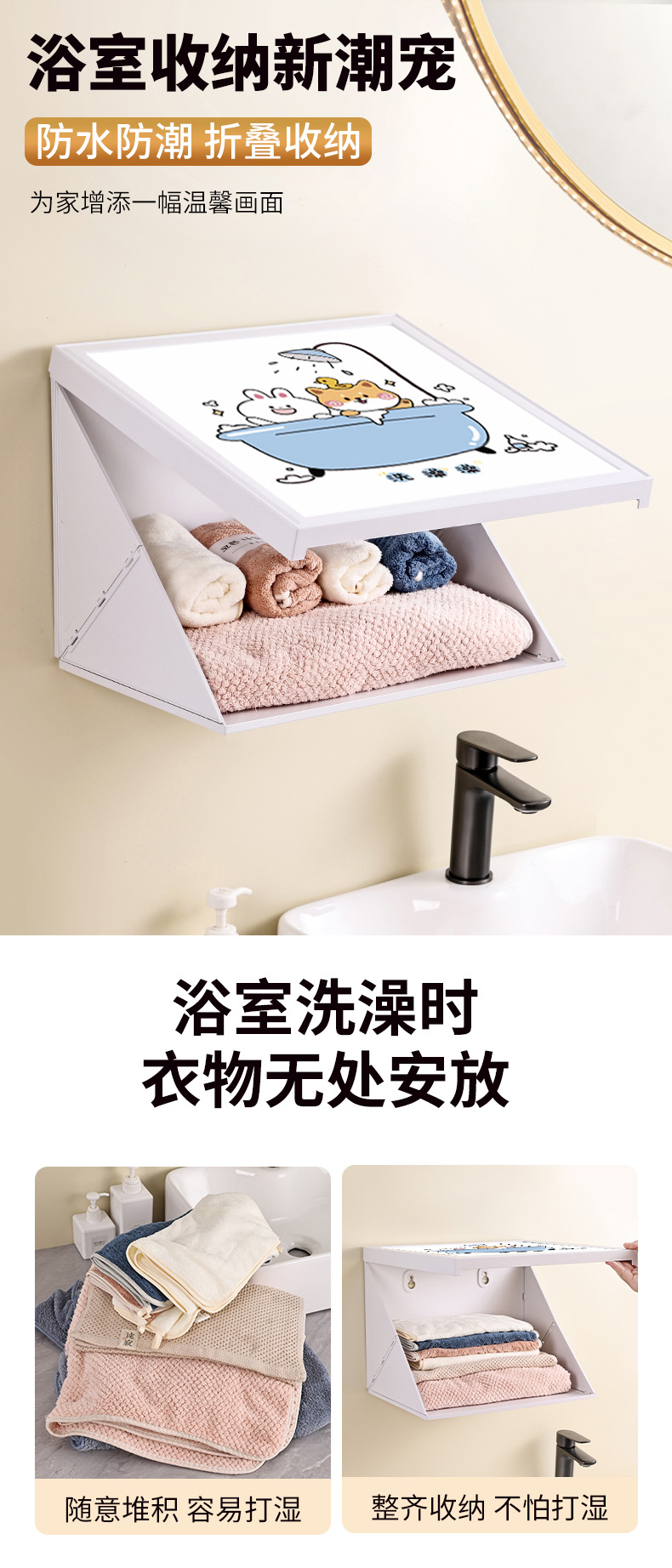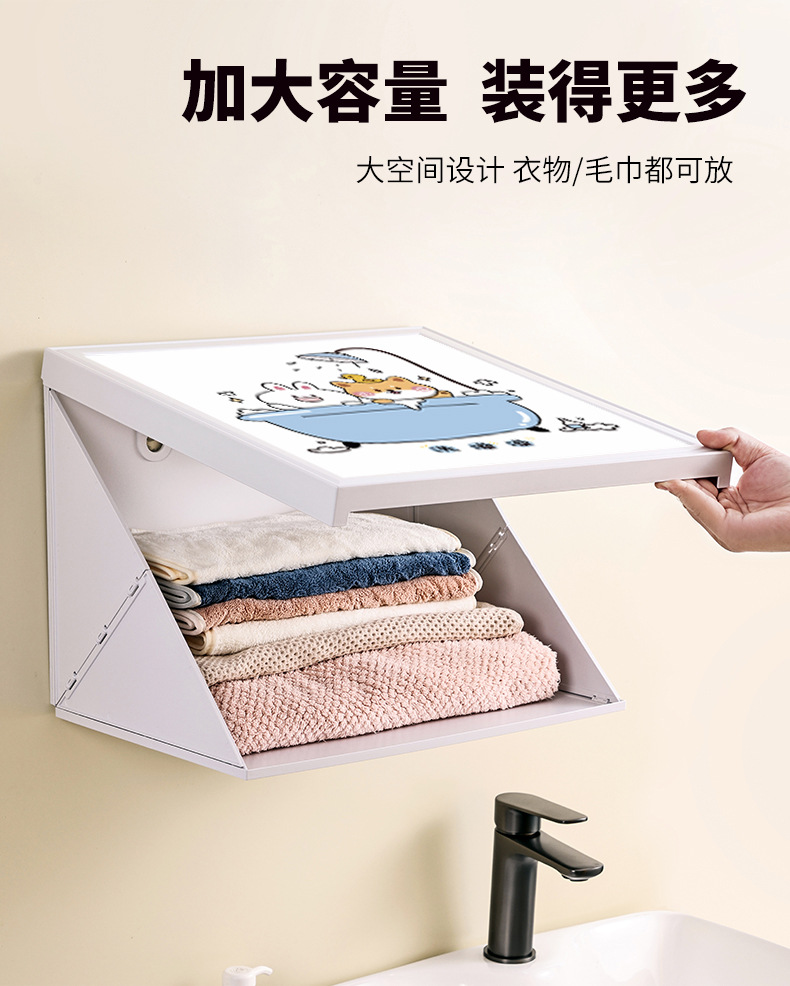浴室壁画折叠收纳箱免打孔挂墙式卫生间防水洗澡放衣服神器置物架