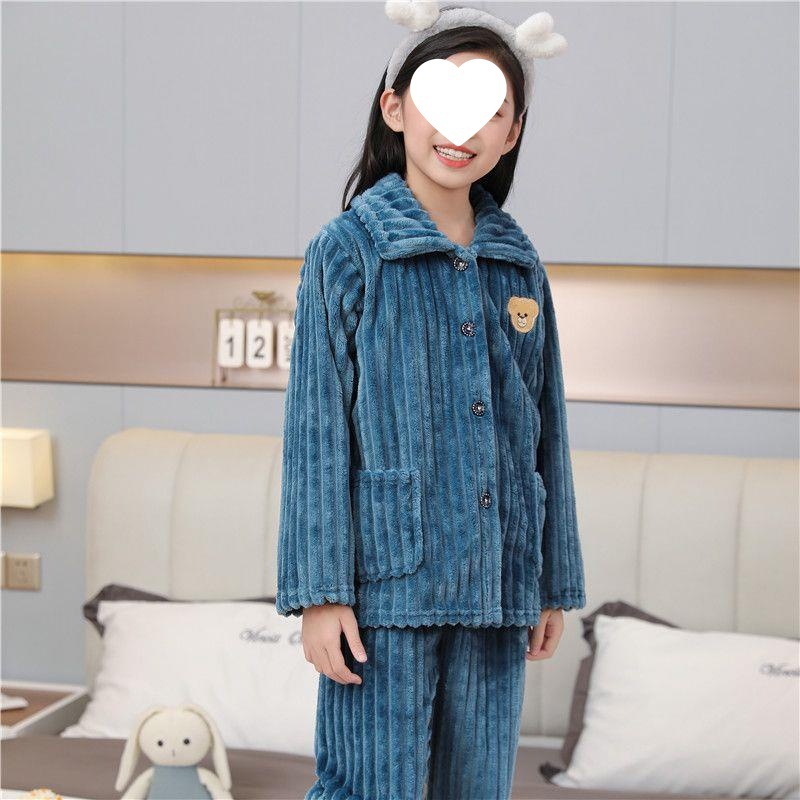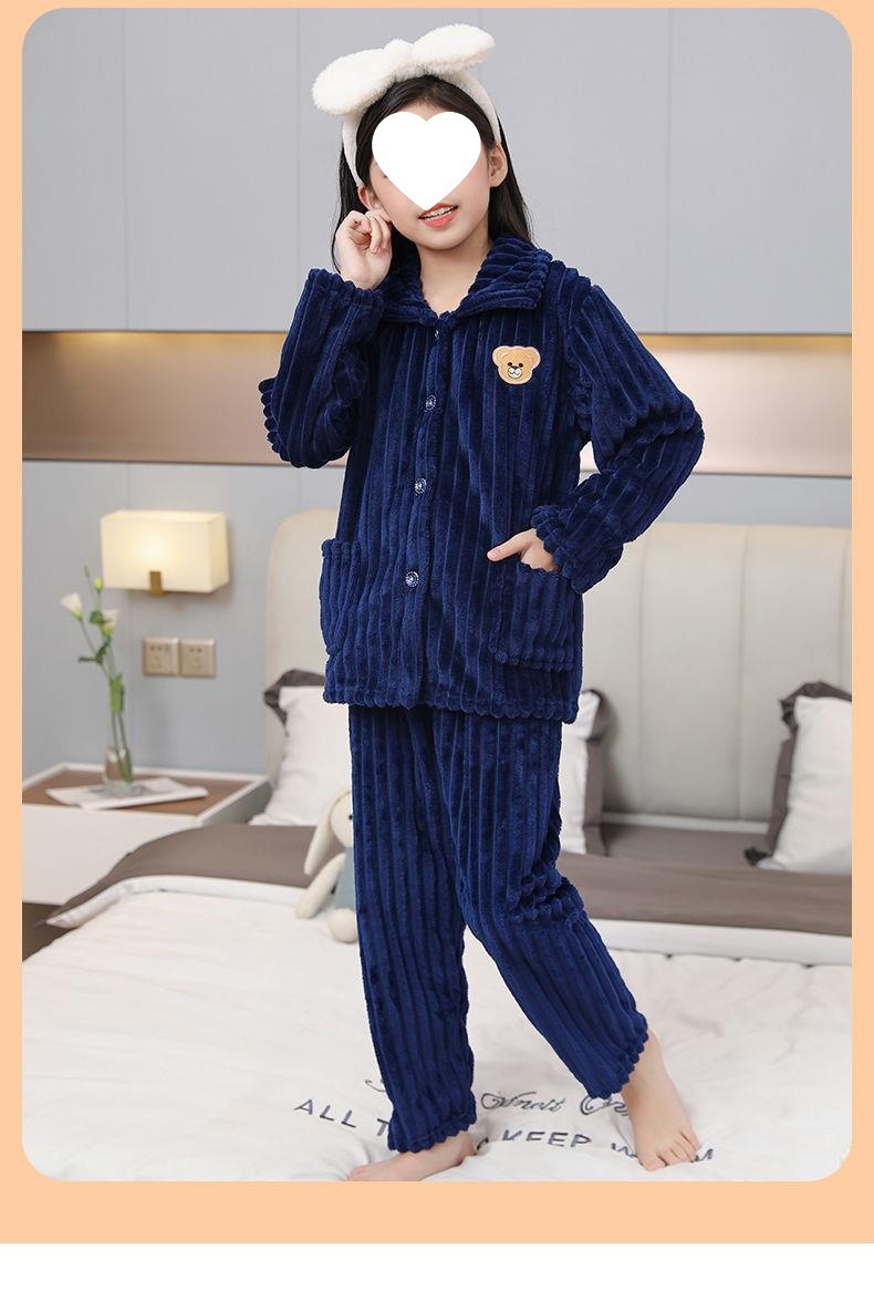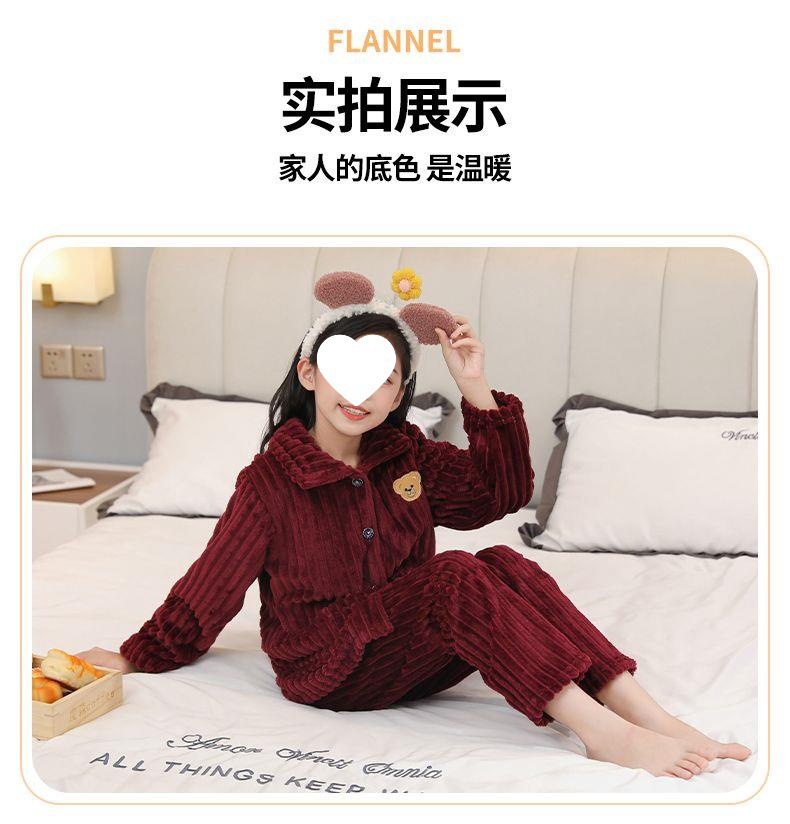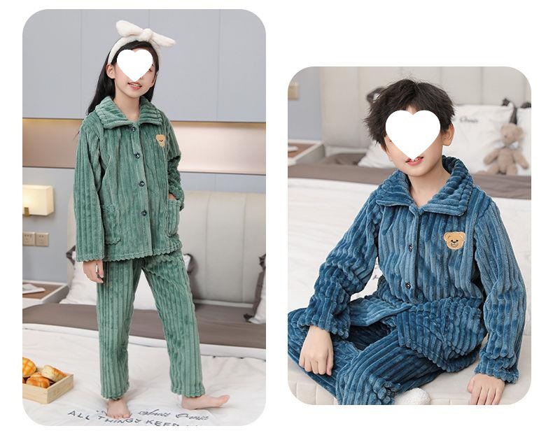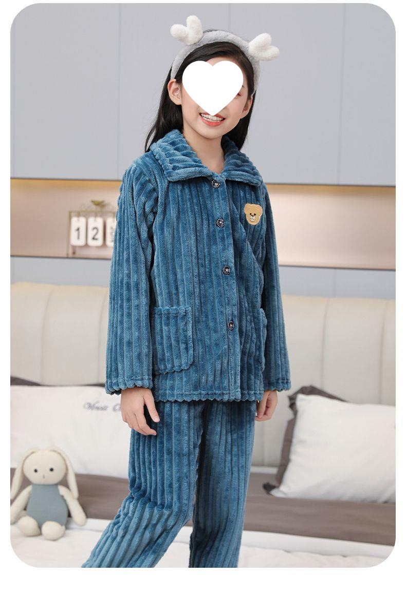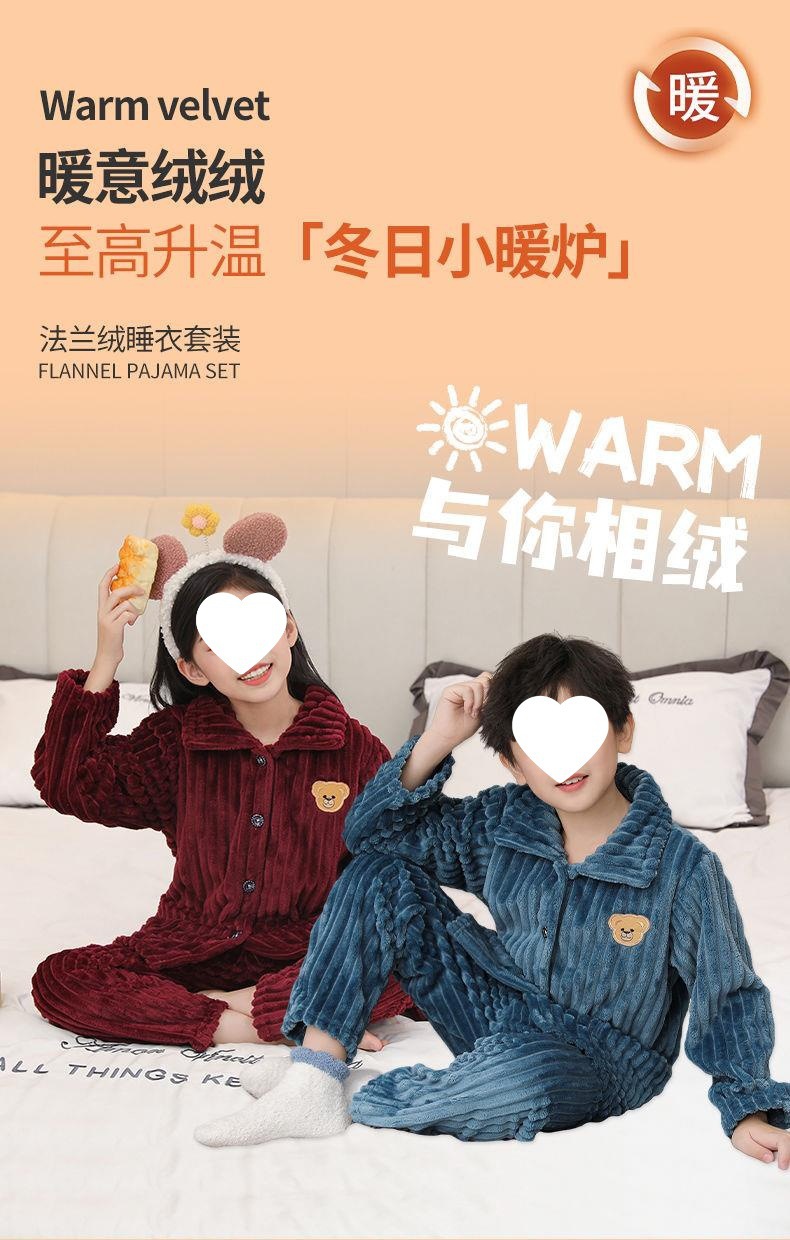 儿童法兰绒睡衣秋冬季男童女童家居服套装中大童加绒加厚女孩