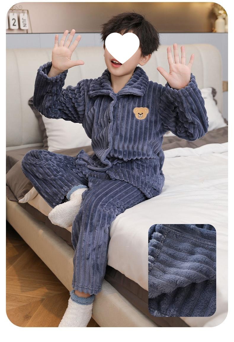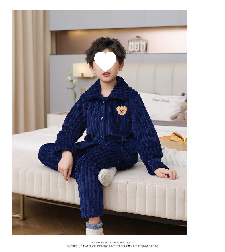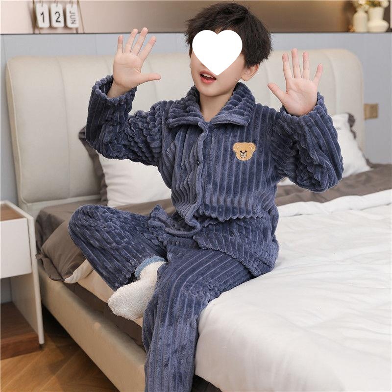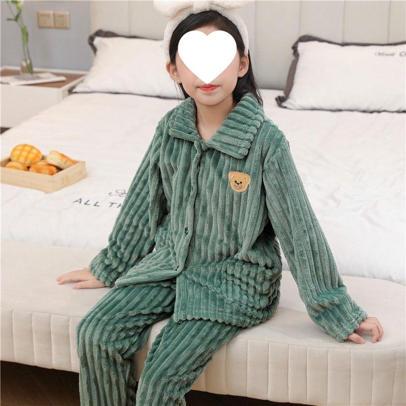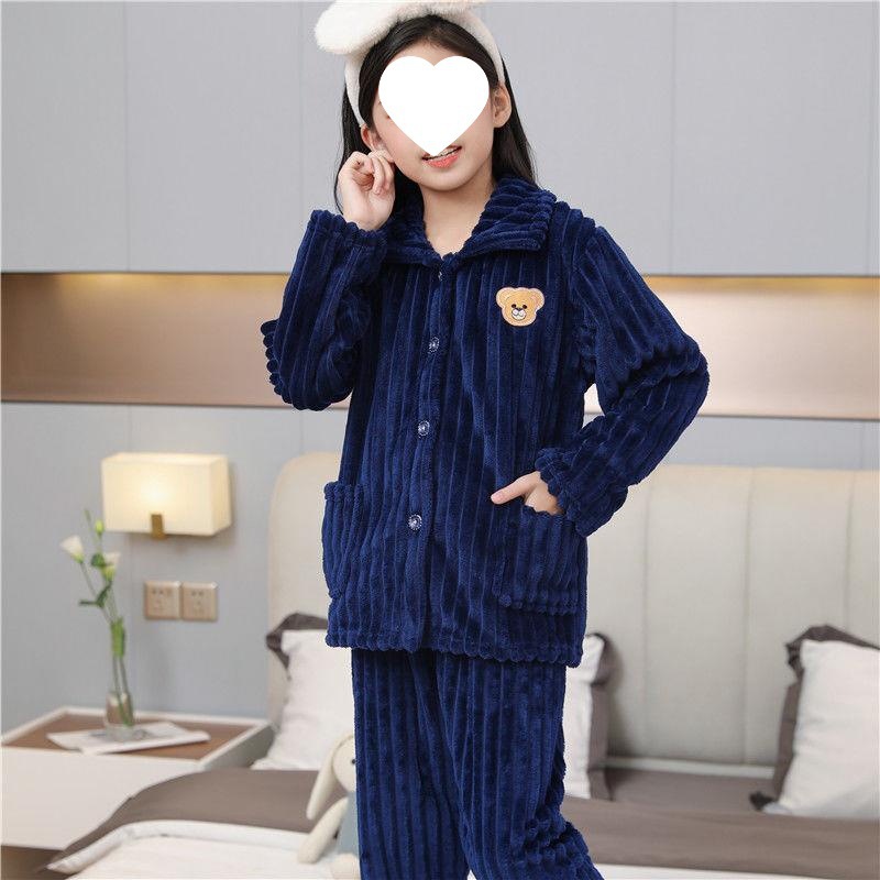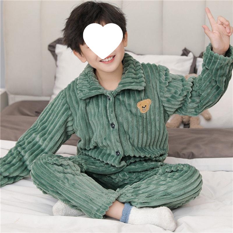 儿童法兰绒睡衣秋冬季男童女童家居服套装中大童加绒加厚女孩