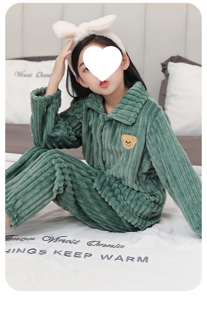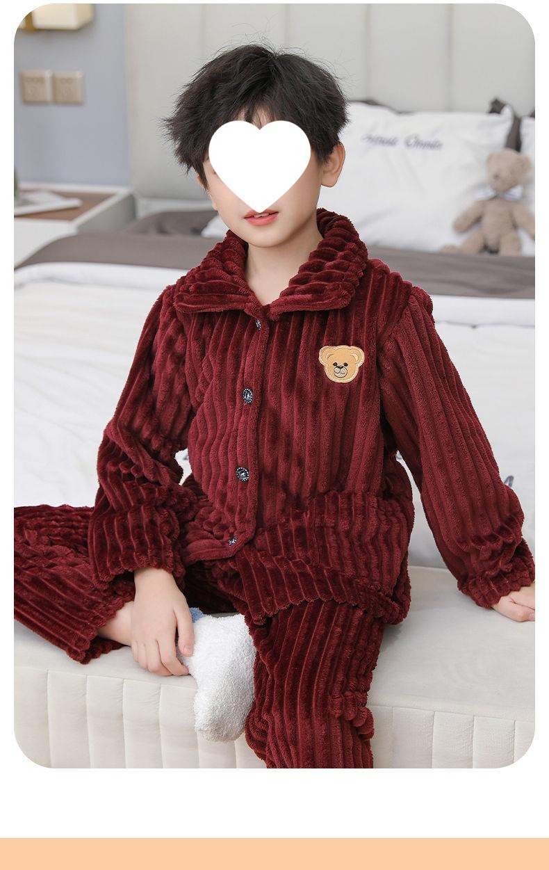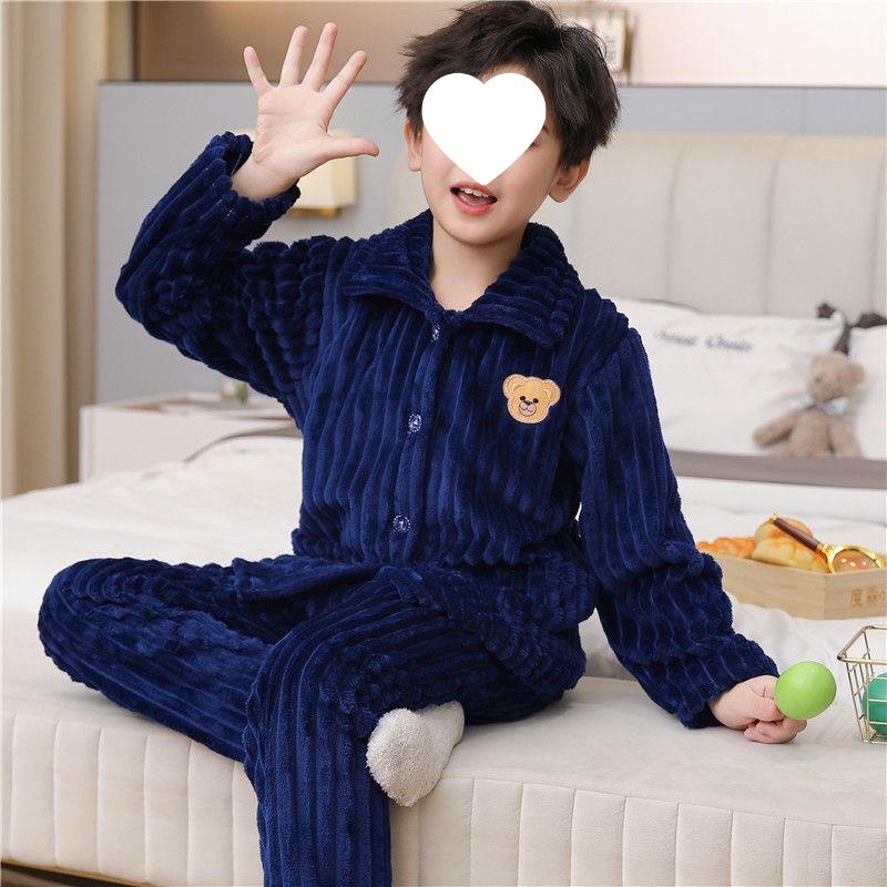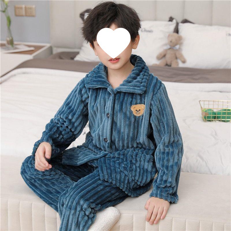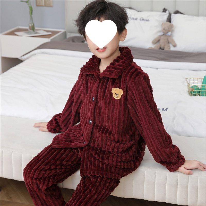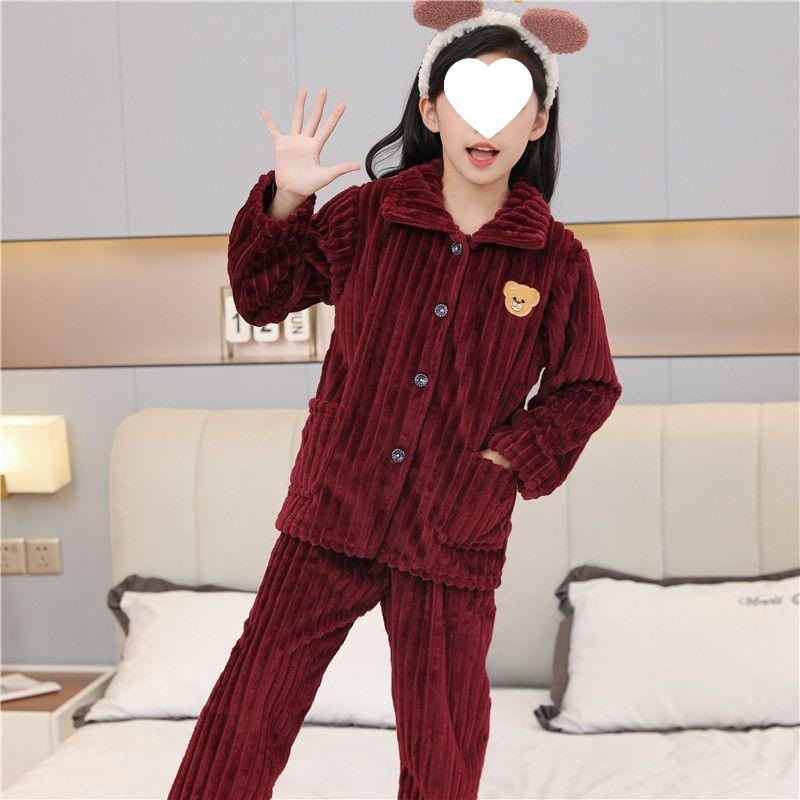 儿童法兰绒睡衣秋冬季男童女童家居服套装中大童加绒加厚女孩