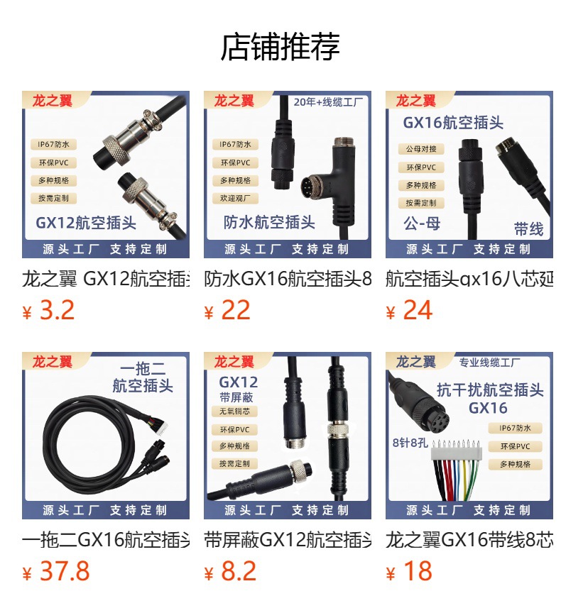 龙之翼GX16航空插头公转端子带屏蔽线缆带线8芯车载监控连接器,批发价,价格:12,厂家直销,龙之翼GX16航空插头公转端子带屏蔽线缆带线8芯车载监控连接器,免费拿样。