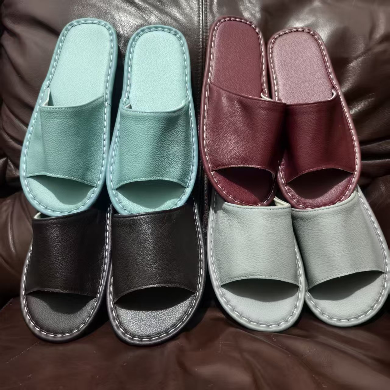 夏季居家真皮拖鞋酒店采购伴手礼大码凉拖办公室牛皮拖礼赠定 制