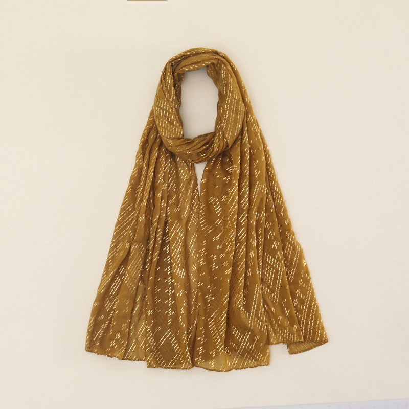 跨境爆款马来西亚女士高级感围巾烫金风格中东莫代尔棉长丝巾头巾