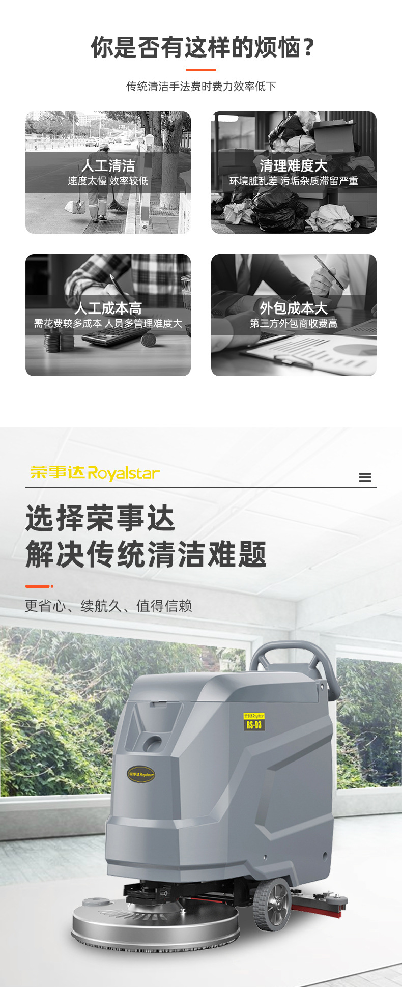 荣事达RS-D3手推式小型洗地机工厂商用工业车间商场地面清洗机
