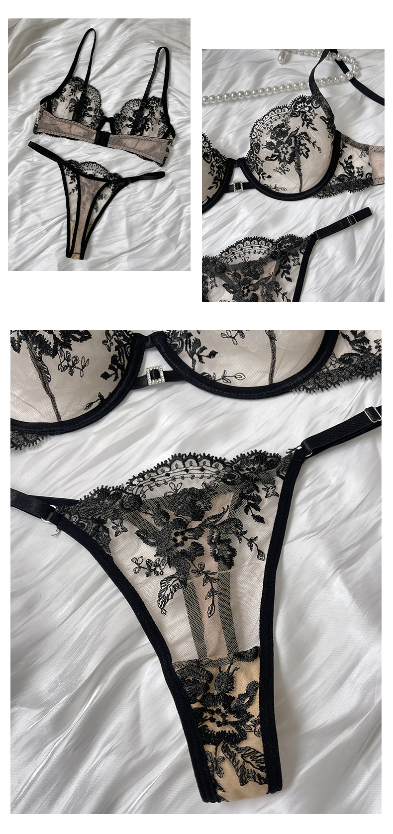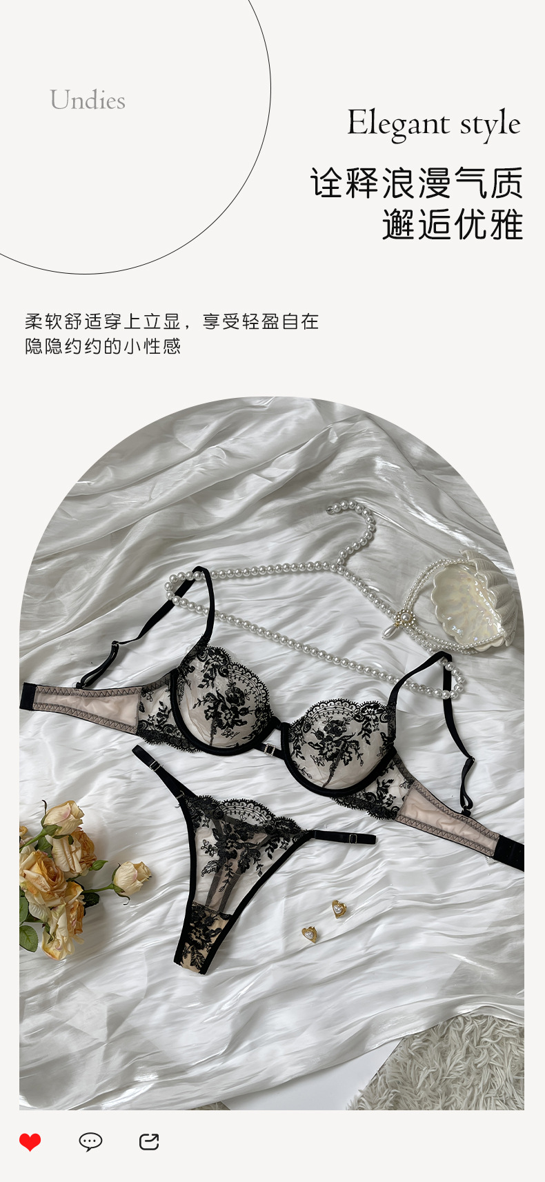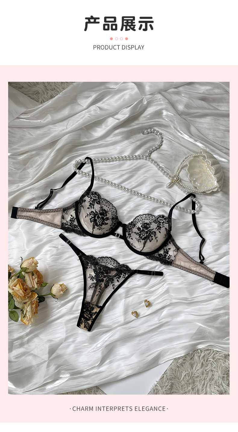 美式纯欲性感内衣套装女薄款花朵刺绣聚拢收副乳文胸罩柔软内裤
