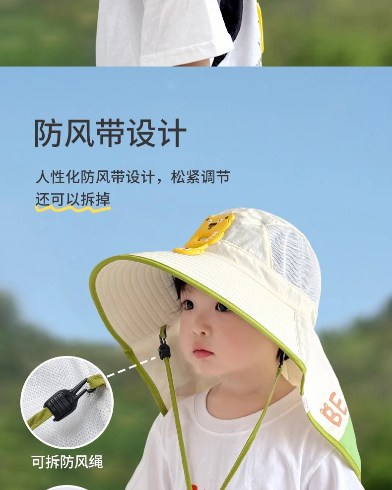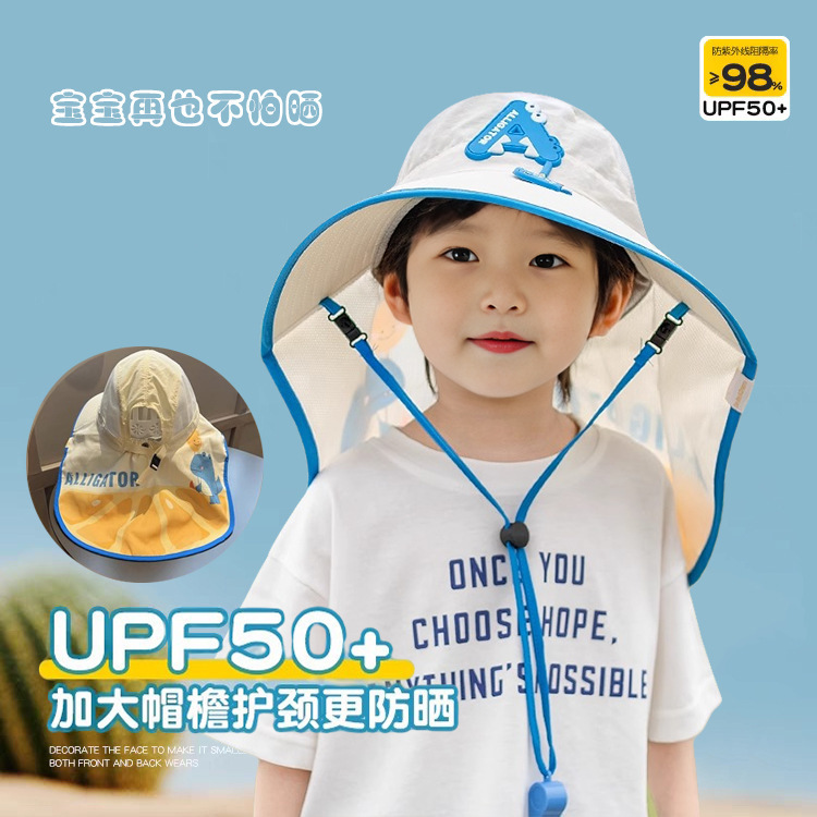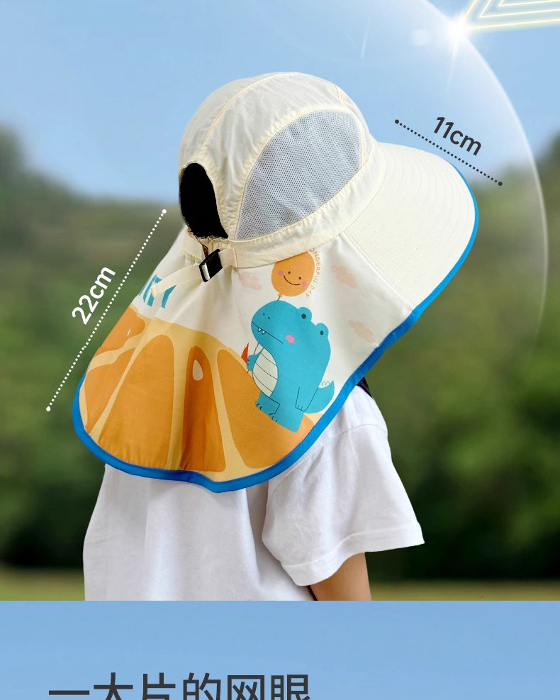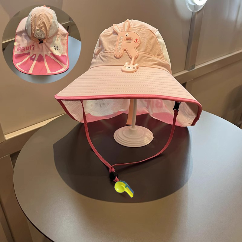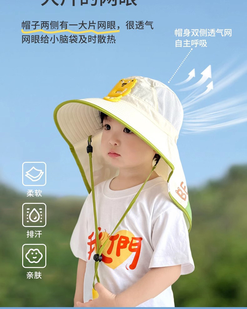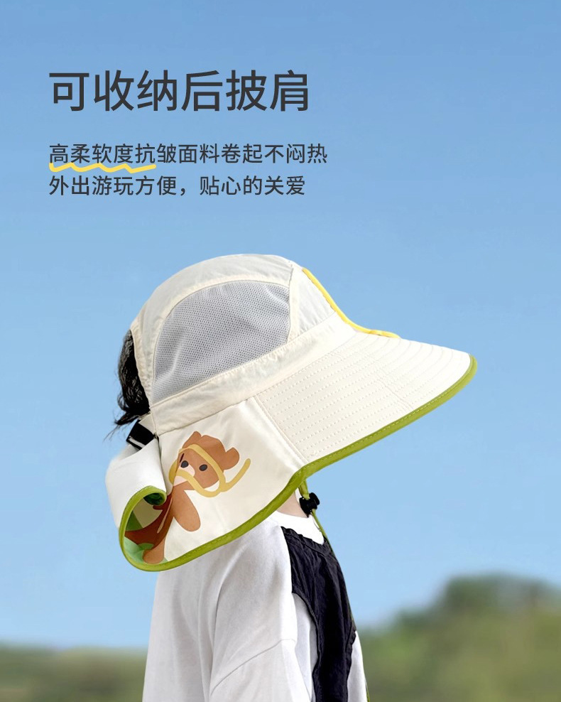 樱桃儿童防晒帽夏季沙滩防紫外线速干透气大帽檐户外加长护颈遮阳