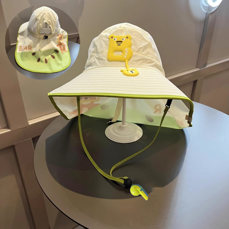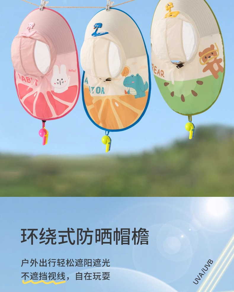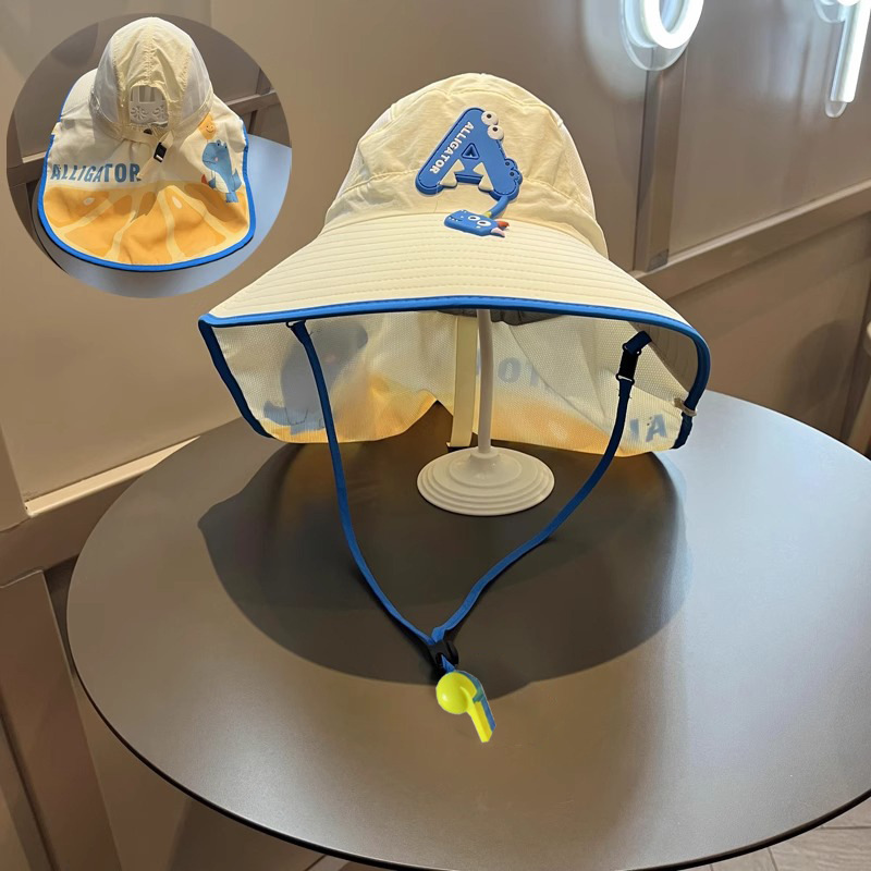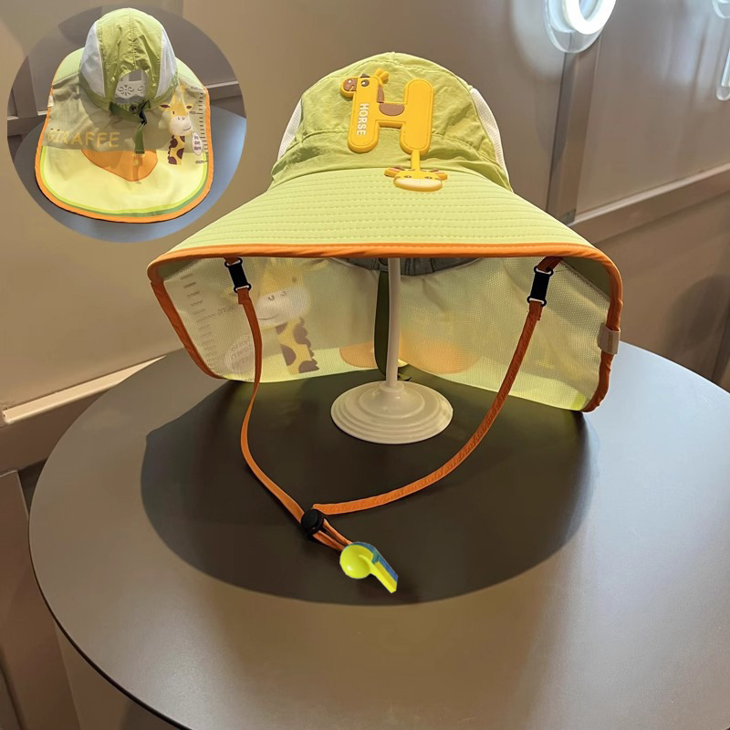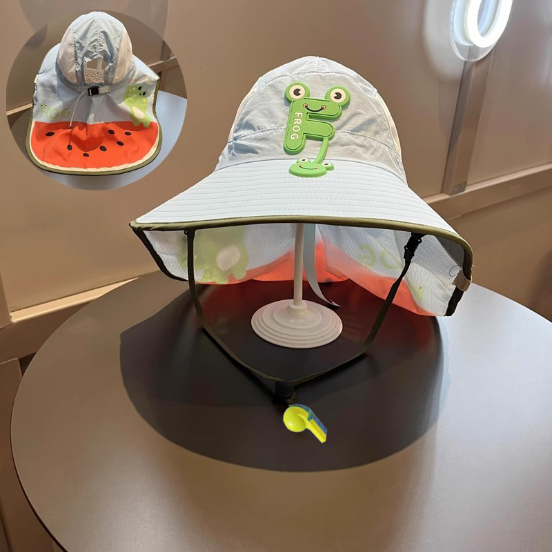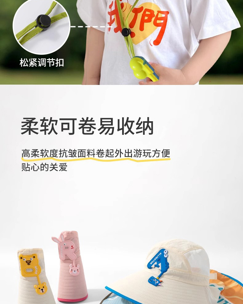樱桃儿童防晒帽夏季沙滩防紫外线速干透气大帽檐户外加长护颈遮阳
