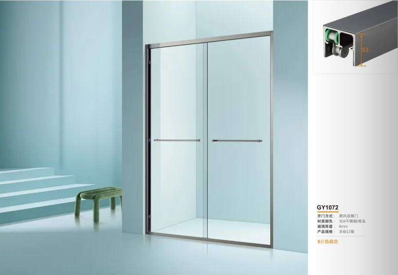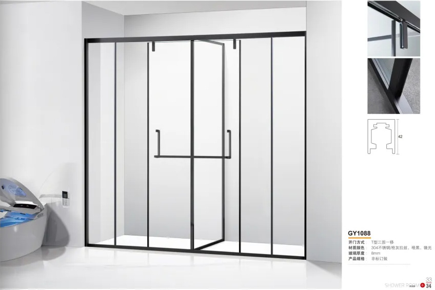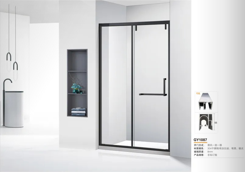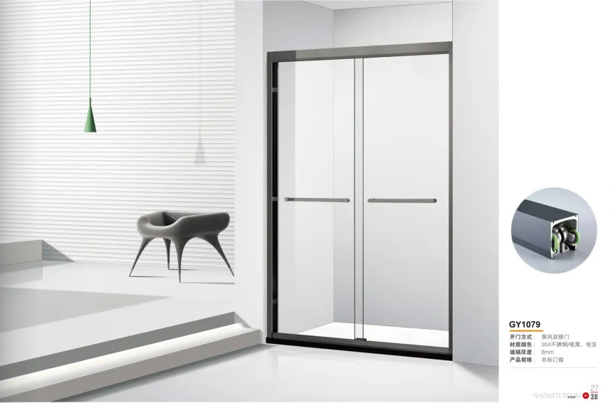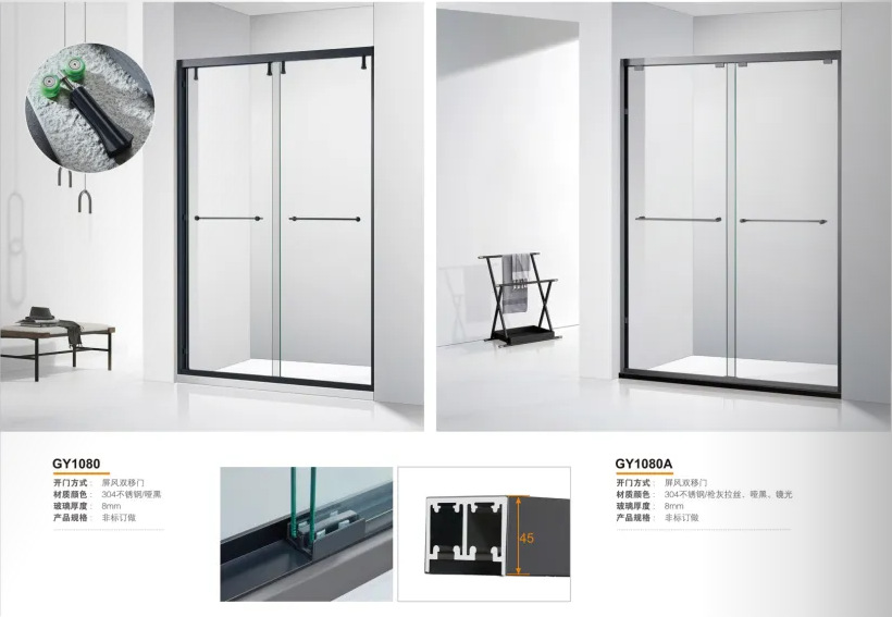厂家定制304钛金古铜色玫瑰金框架8mm钢化玻璃不锈钢推拉门淋浴房