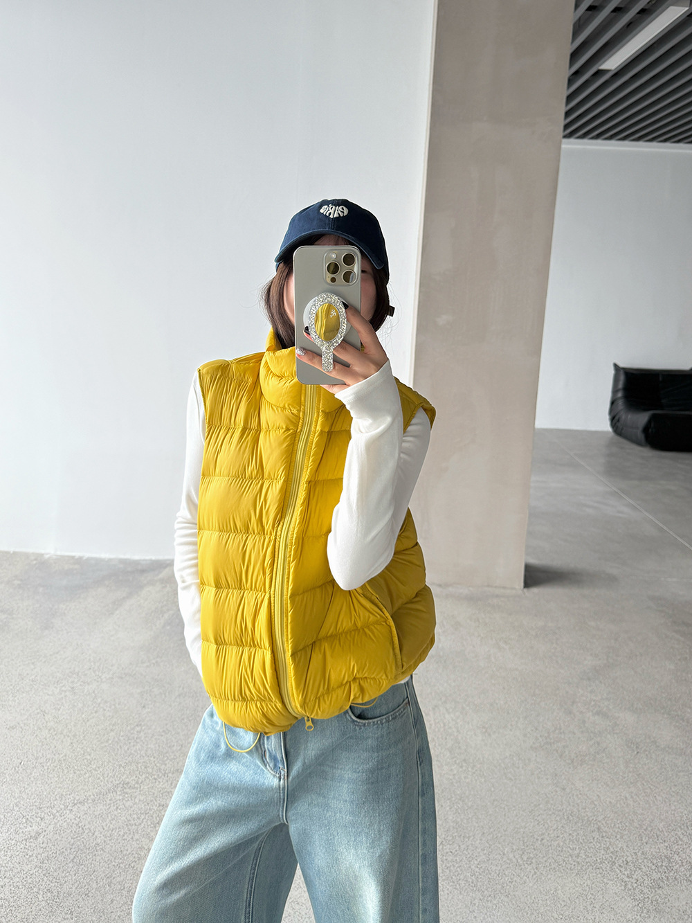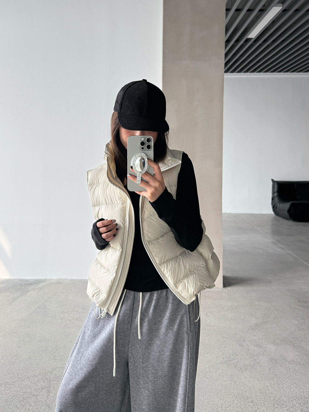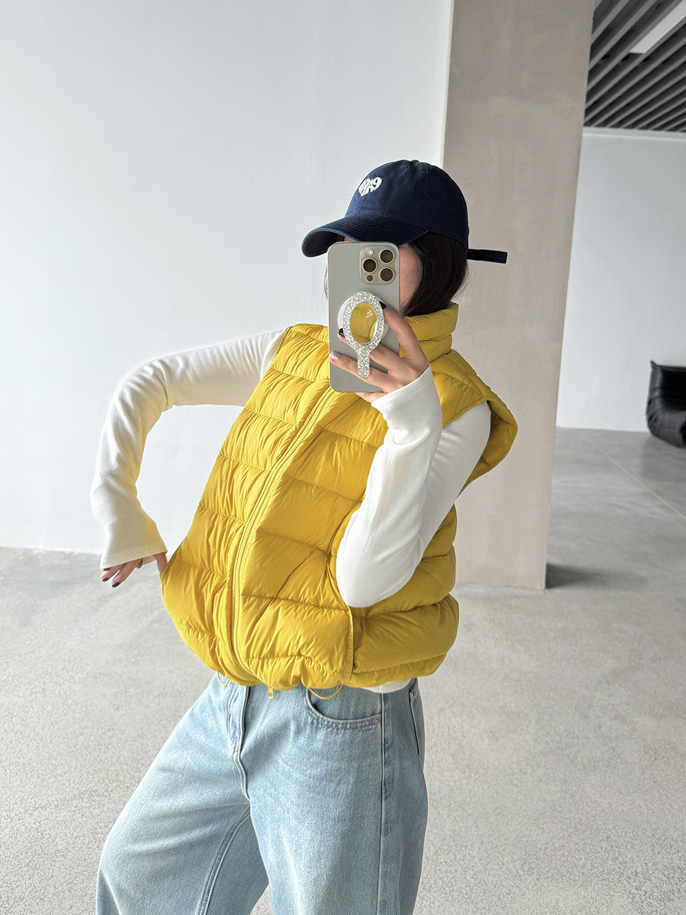 【王琪芝】90白鸭绒立领抽绳无袖马甲女冬季排骨羽绒服背心WQ038
