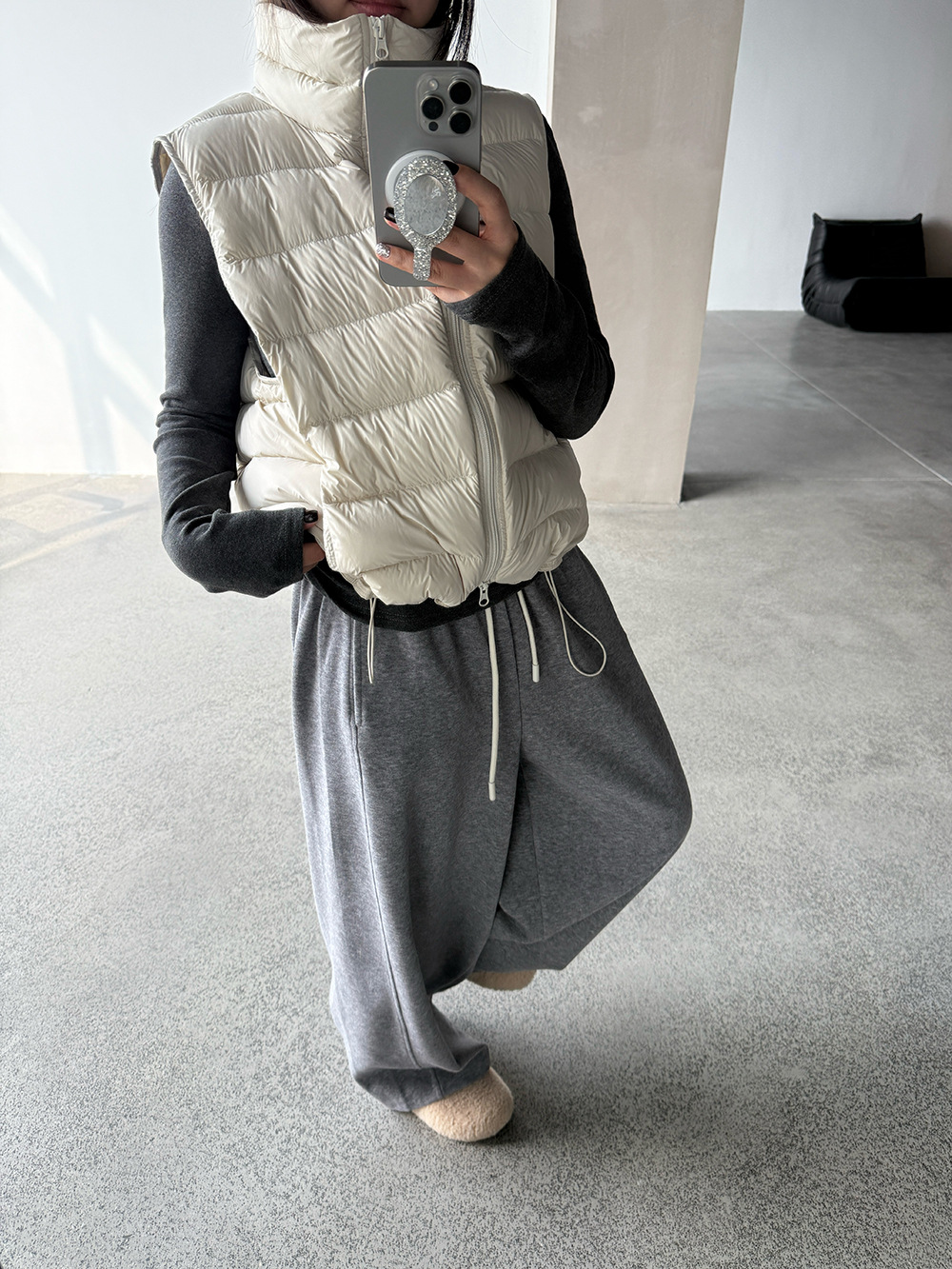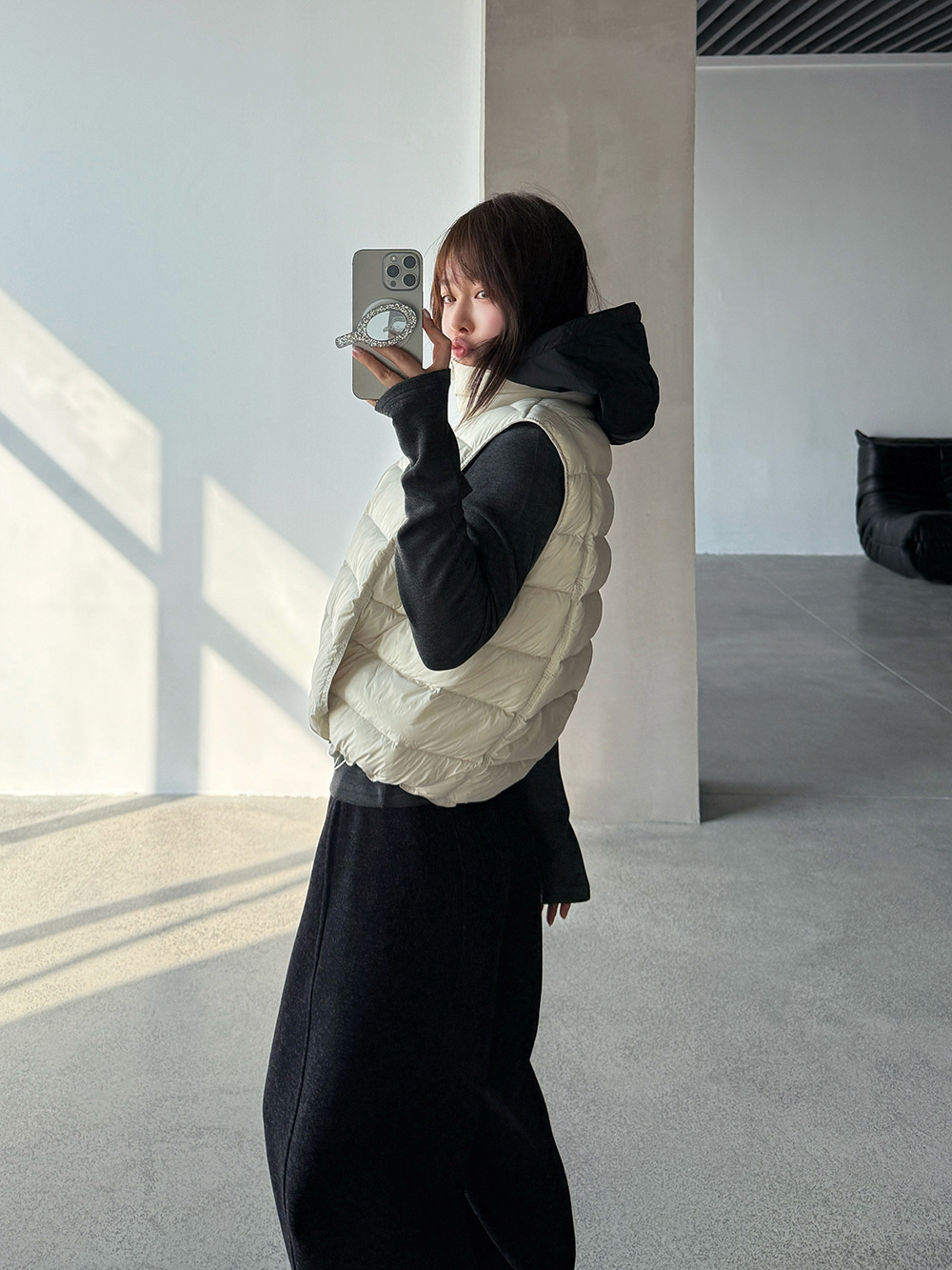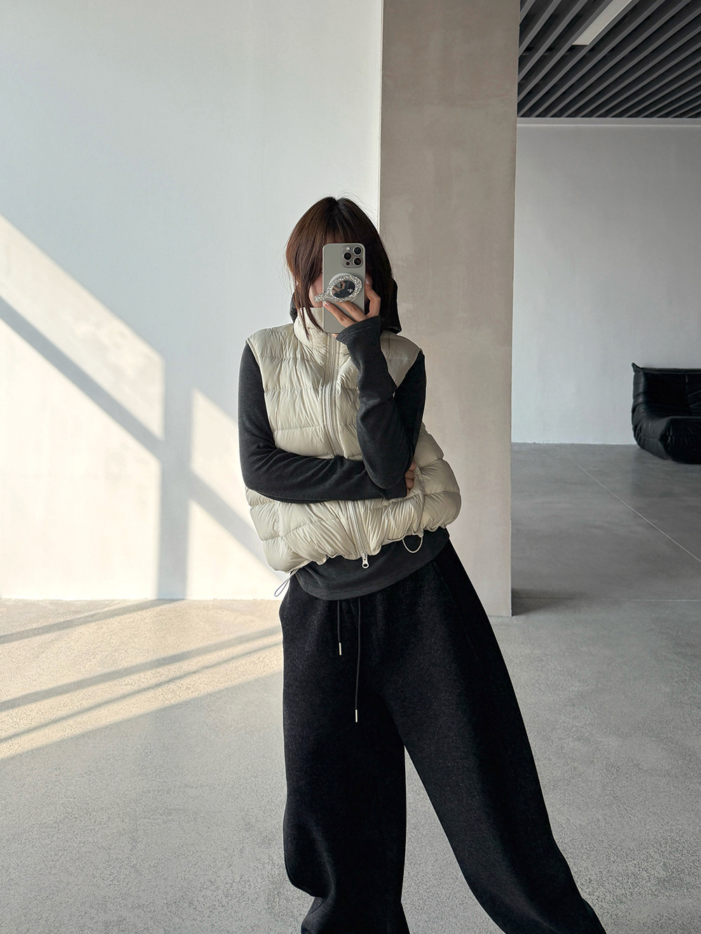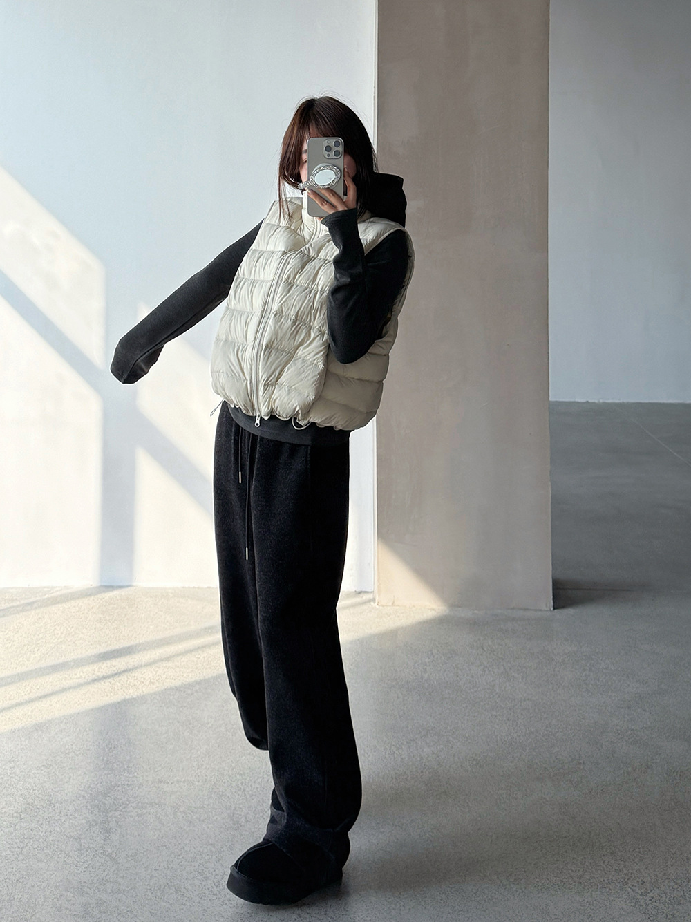 【王琪芝】90白鸭绒立领抽绳无袖马甲女冬季排骨羽绒服背心WQ038