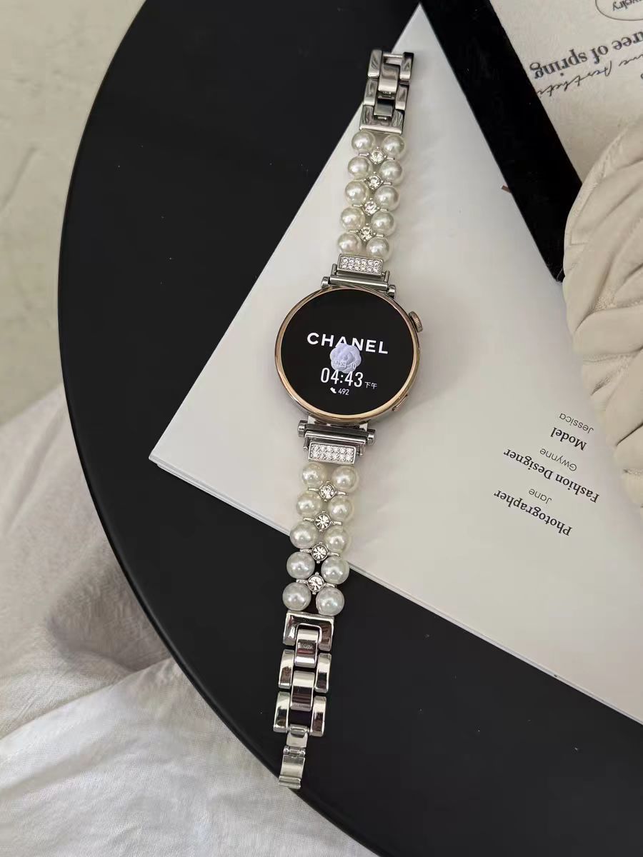 新款十字钻珍珠表带适用华为GT541mm/42mm高级感珍珠女款腕带批发