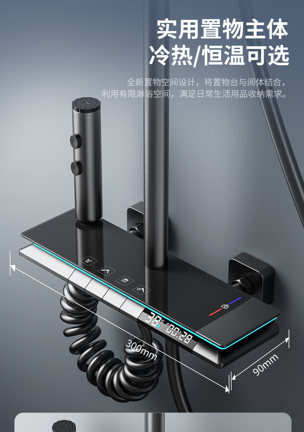 JOMOO九牧淋浴花洒套装钢琴按键氛围灯全套增压沐浴浴室全铜花洒