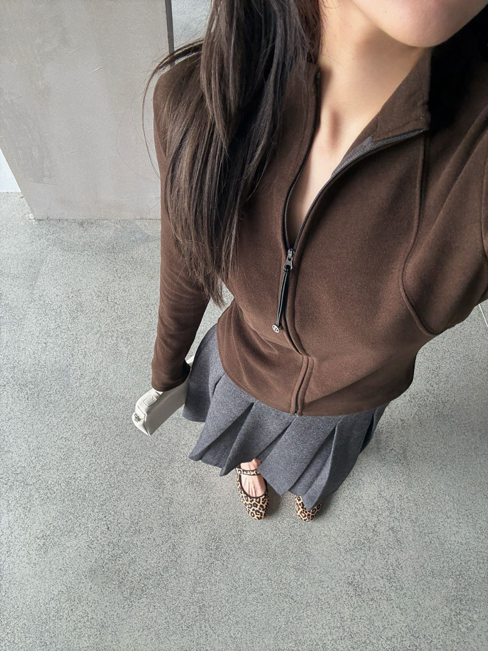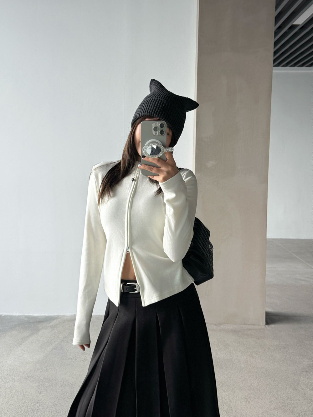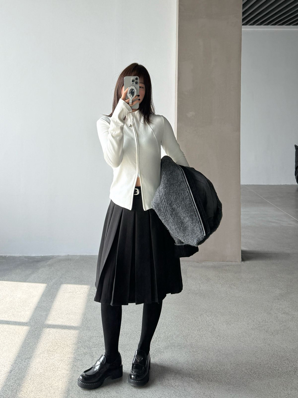 【王琪芝】蛋白软糯立领正肩长袖t恤女秋冬显瘦短款内搭外穿WQ058