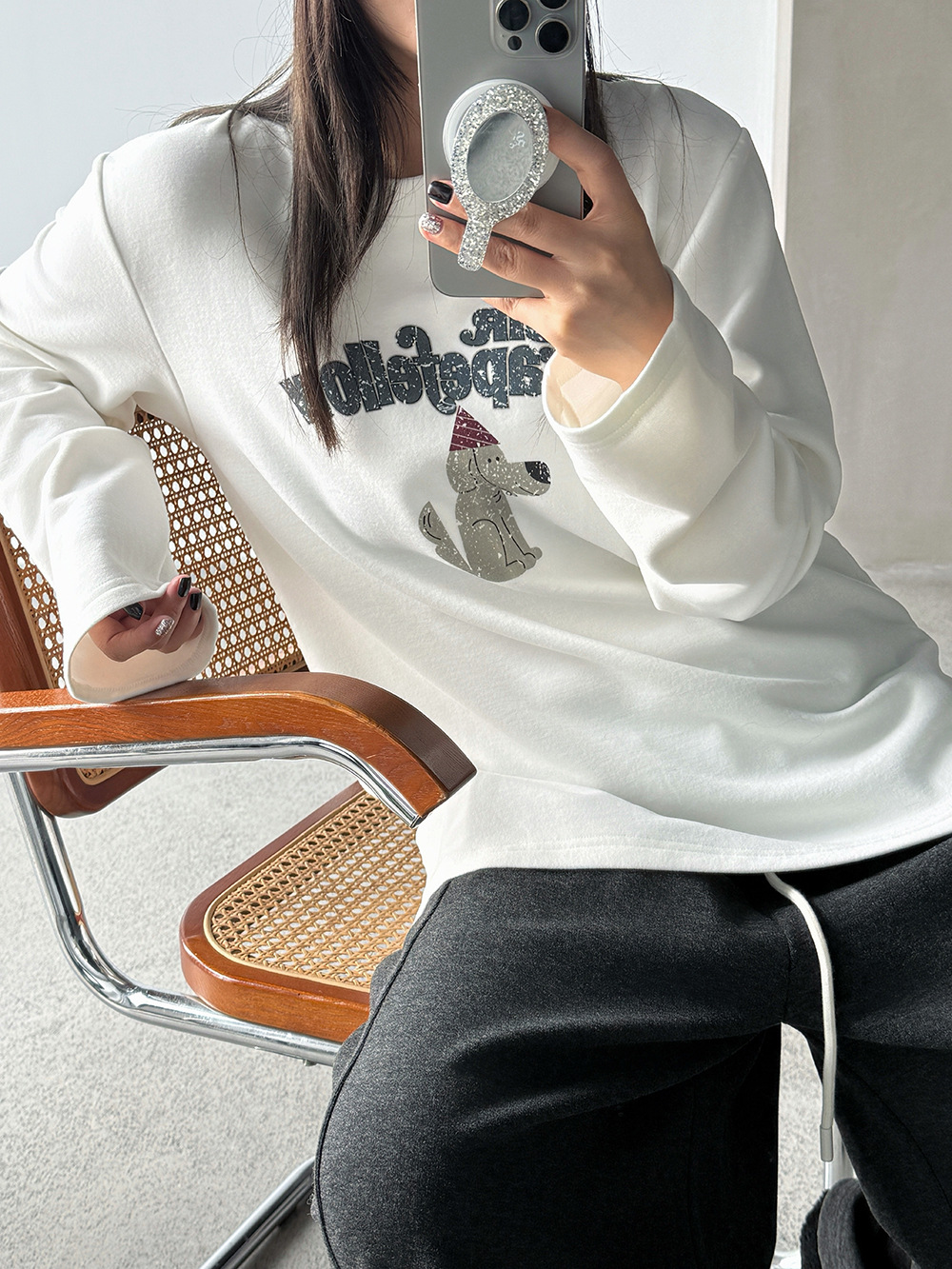【王琪芝】卡通小狗印花短袖T恤女显瘦甜美宽松百搭个性上衣WQ059