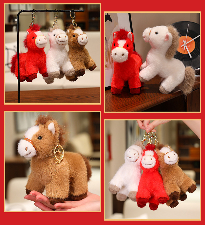 跨境创意卡通小马仿真水貂绒小白马挂件儿童生日礼物可爱公仔挂件