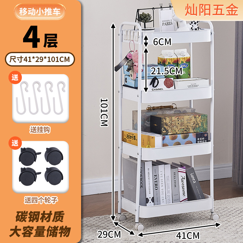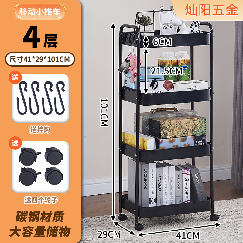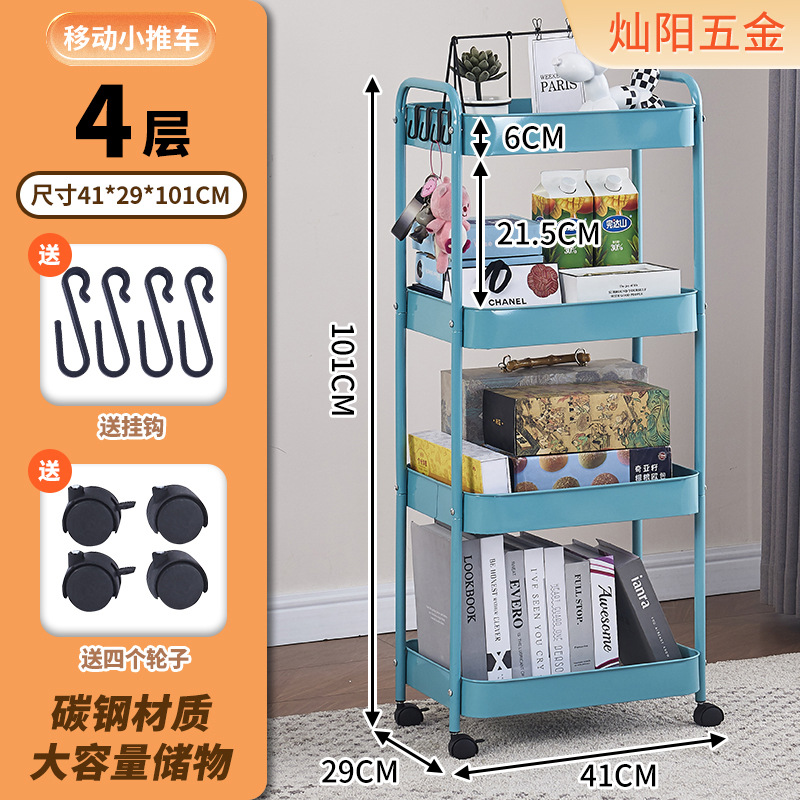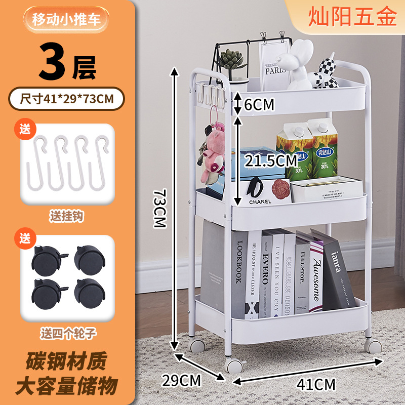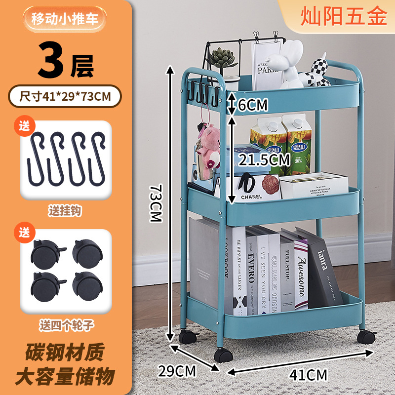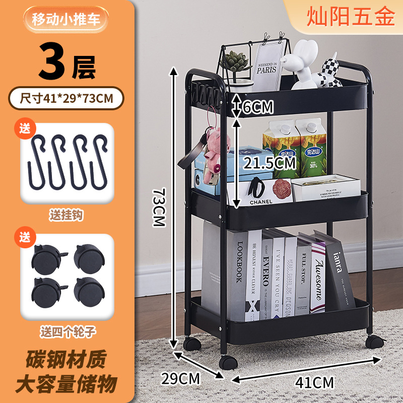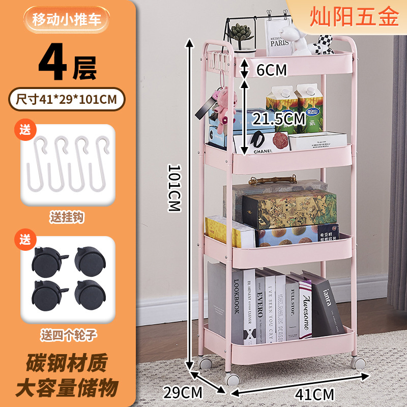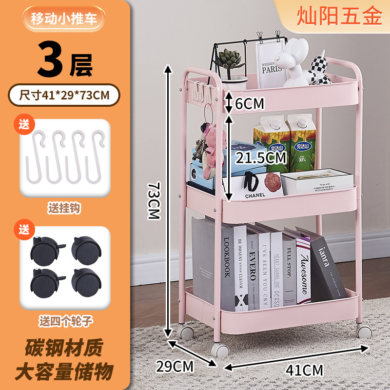 厂家定制多层置物架可移动卧室卫生间客厅碳钢可移动置物架小推车
