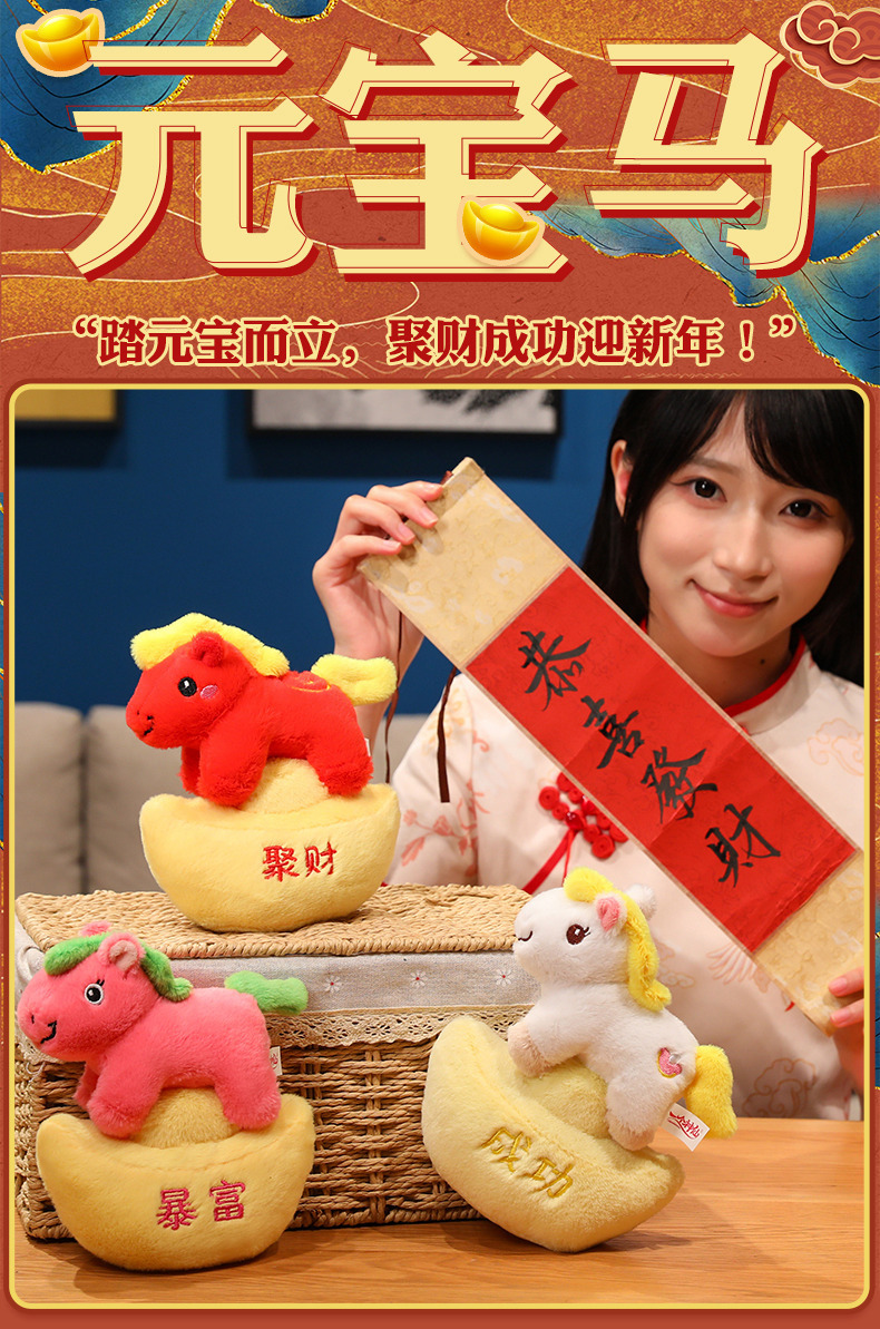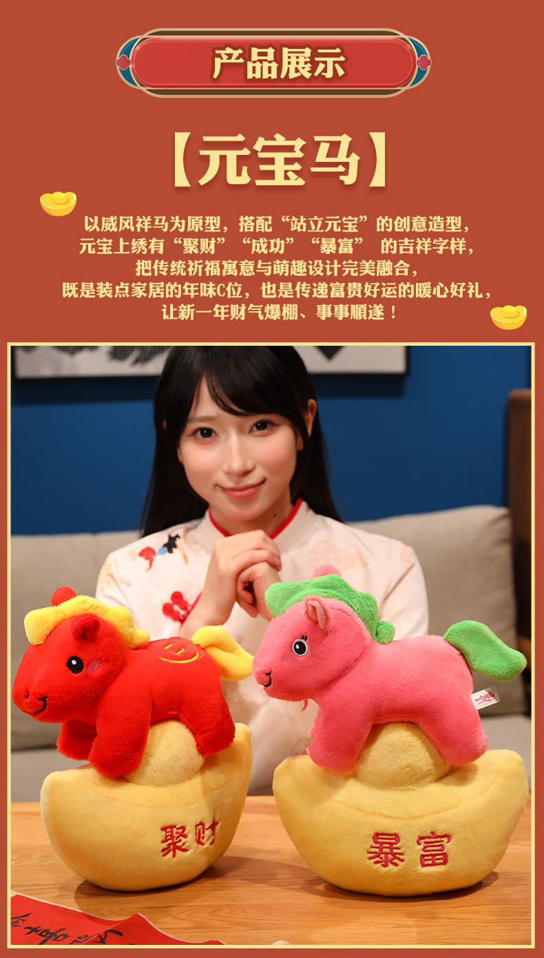 马年吉祥物公仔毛绒玩具暴富聚财马到成功玩偶生肖马娃娃年会礼品