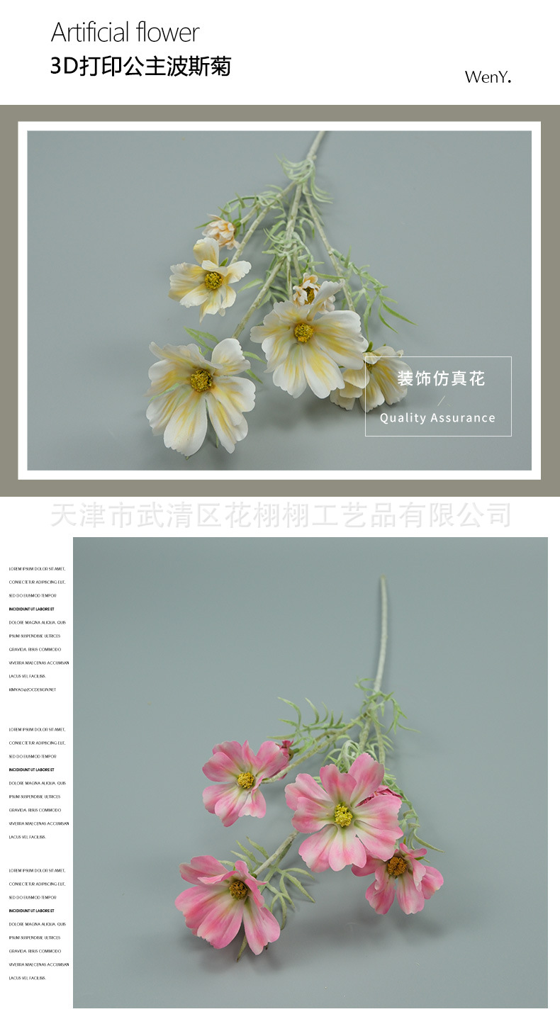仿真花3D打印公主波斯菊格桑花单支家居装饰插花摆件家居装扮