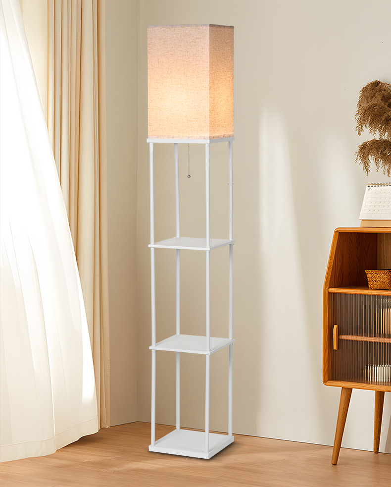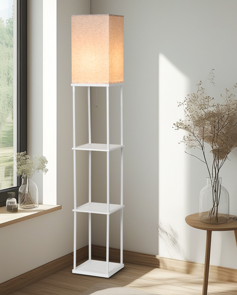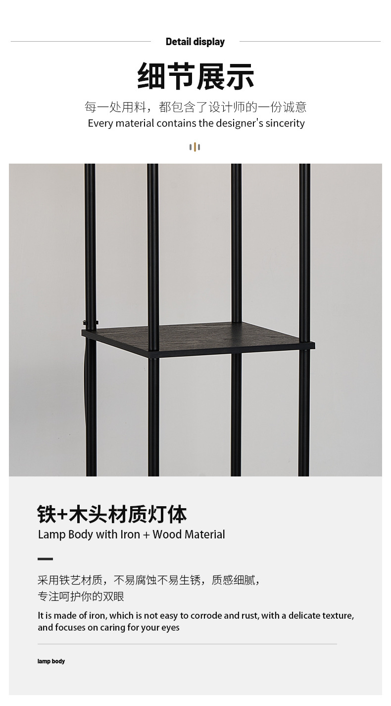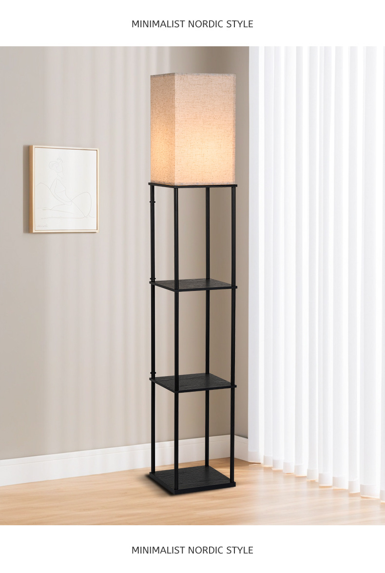 亚马逊跨境直供卧室书房客厅欧式复古氛围LED木质置物层架落地灯