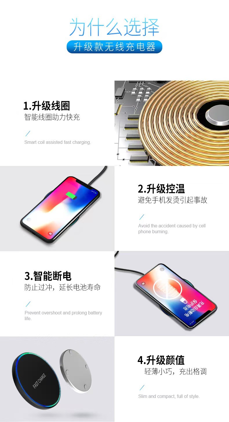 无线充电器15W塑料材质快充圆盘迷你设计适用苹果华为三星,批发价,价格:6.5,厂家直销,无线充电器15W塑料材质快充圆盘迷你设计适用苹果华为三星,免费拿样。