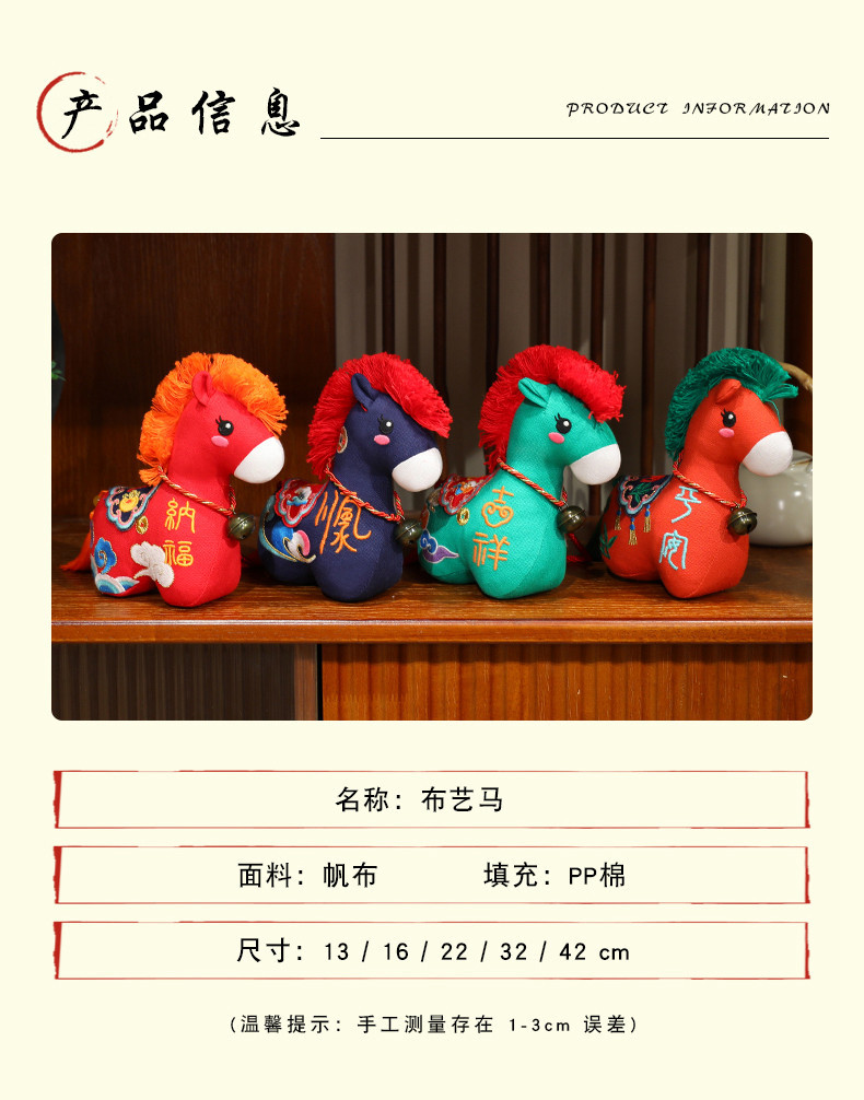 马年吉祥物公仔毛绒玩具纳福招财布艺马玩偶生肖马娃娃年会礼品