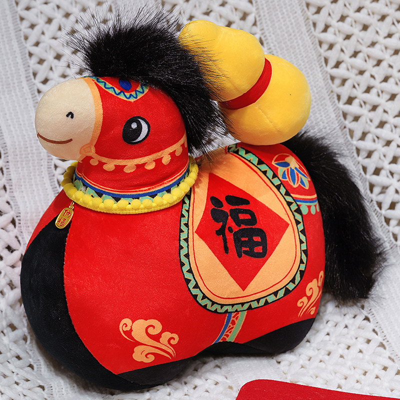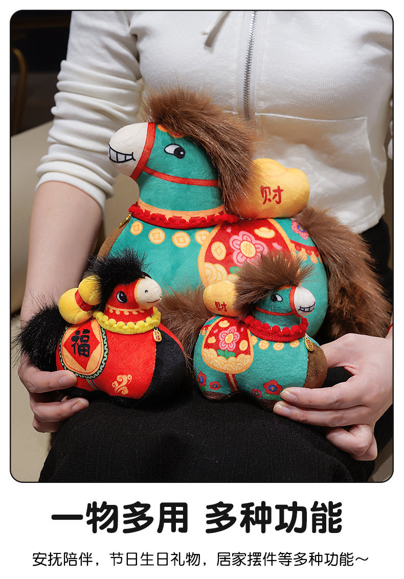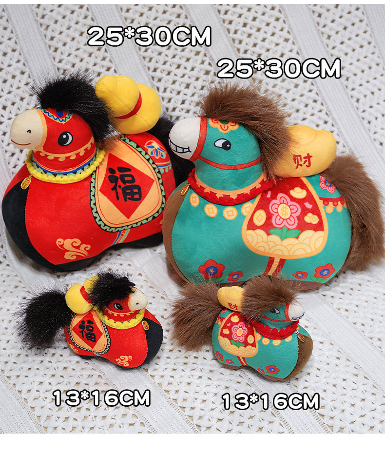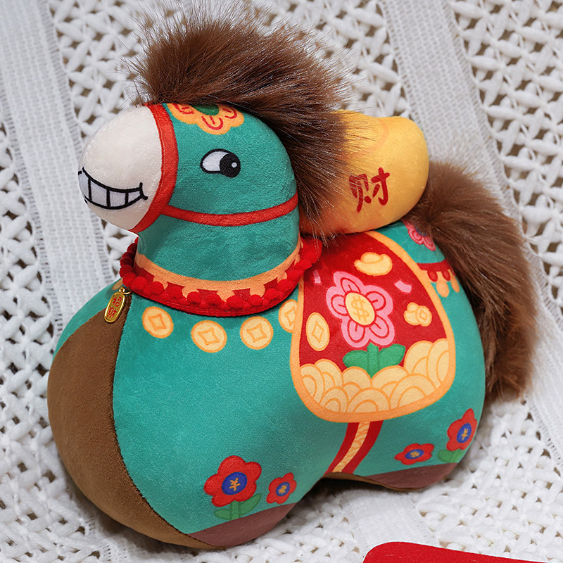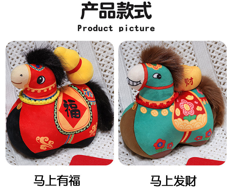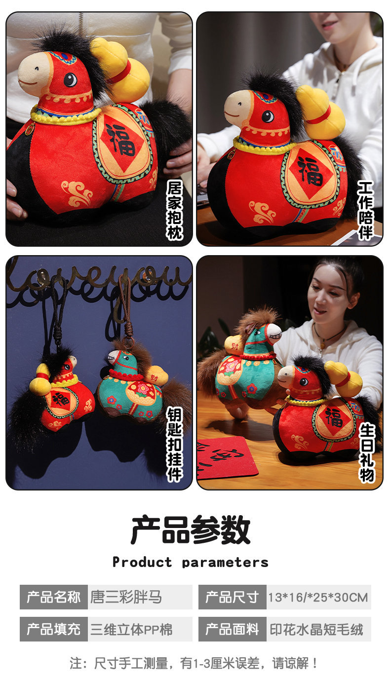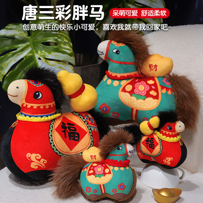 新年吉祥物唐三彩福禄元宝小马公仔毛绒玩具偶娃娃年会活动礼品