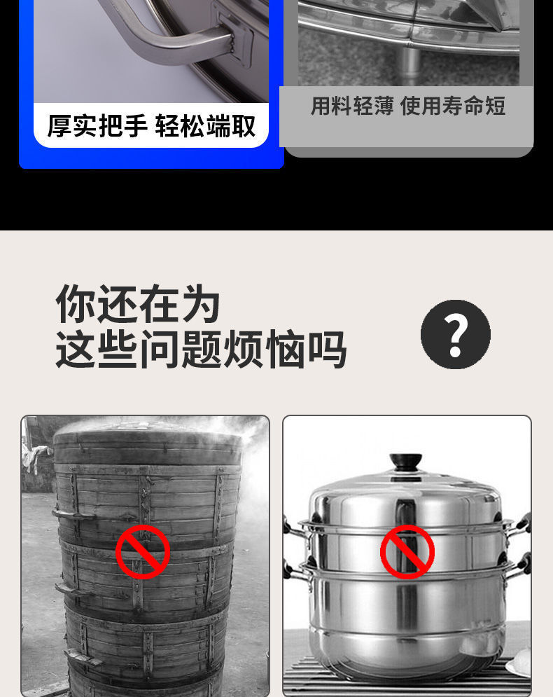 欧顿不锈钢蒸笼商用大号加厚加高笼屉特大号家用超大蒸锅大容量