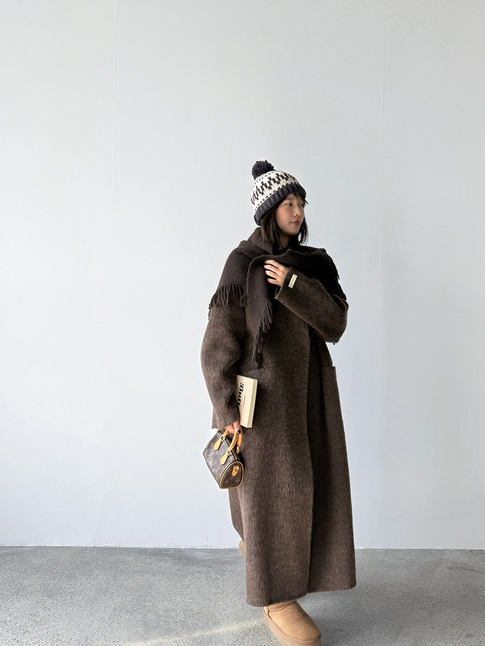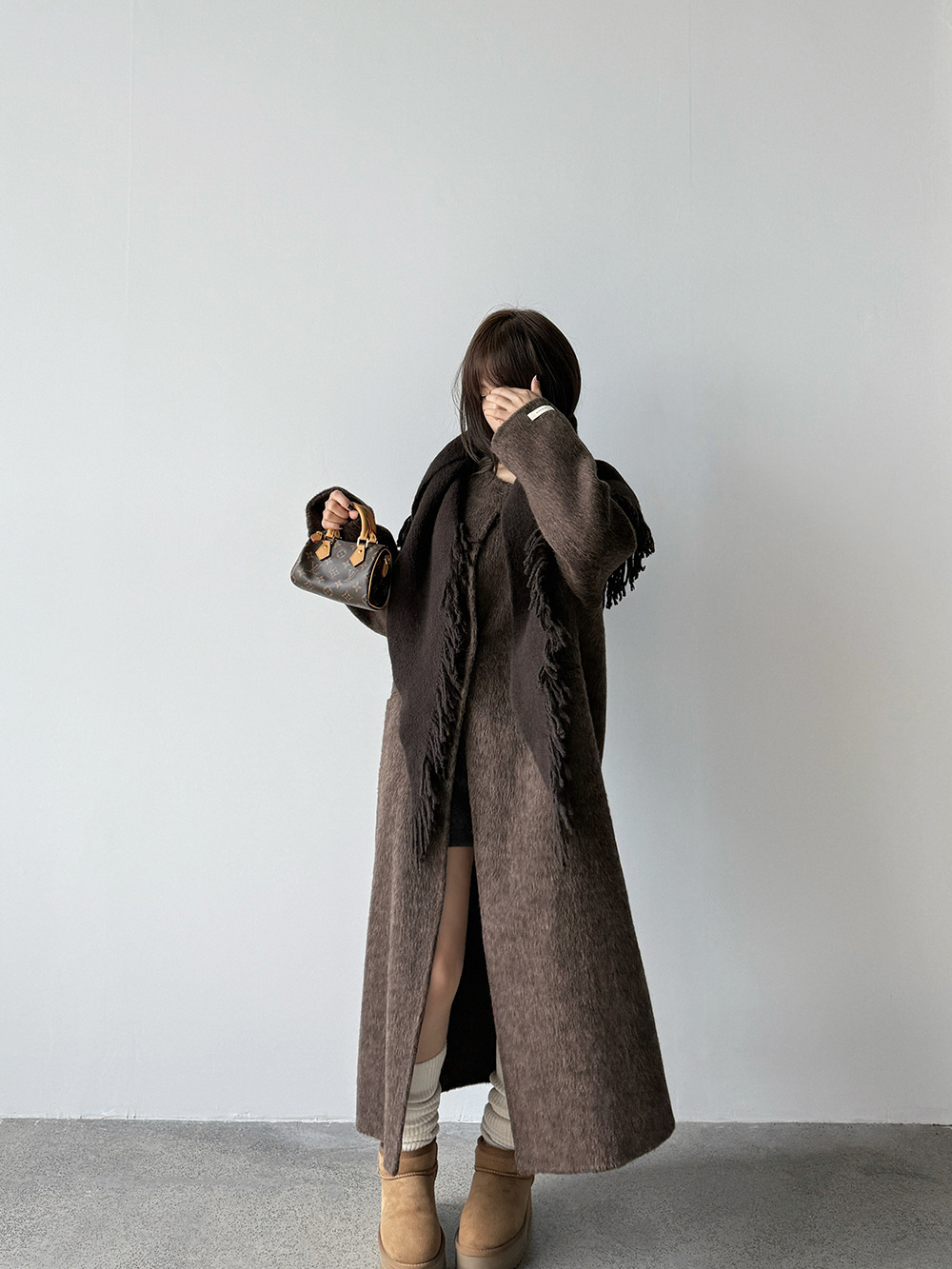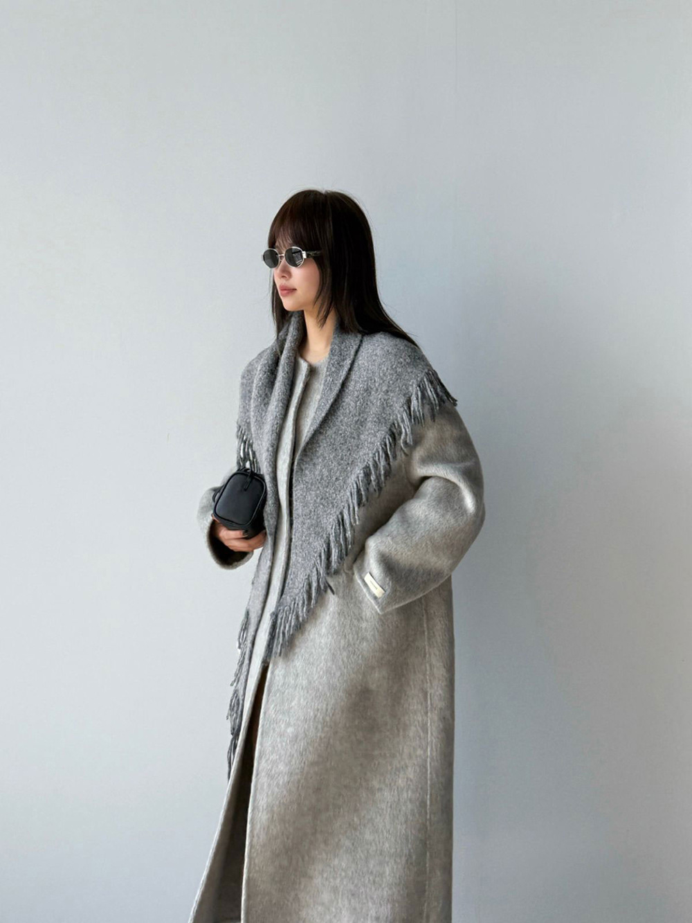 【王琪芝】绵羊毛韩系气质双面呢大衣女配围巾保暖厚长外套WQ086