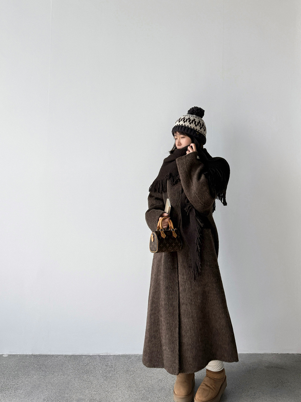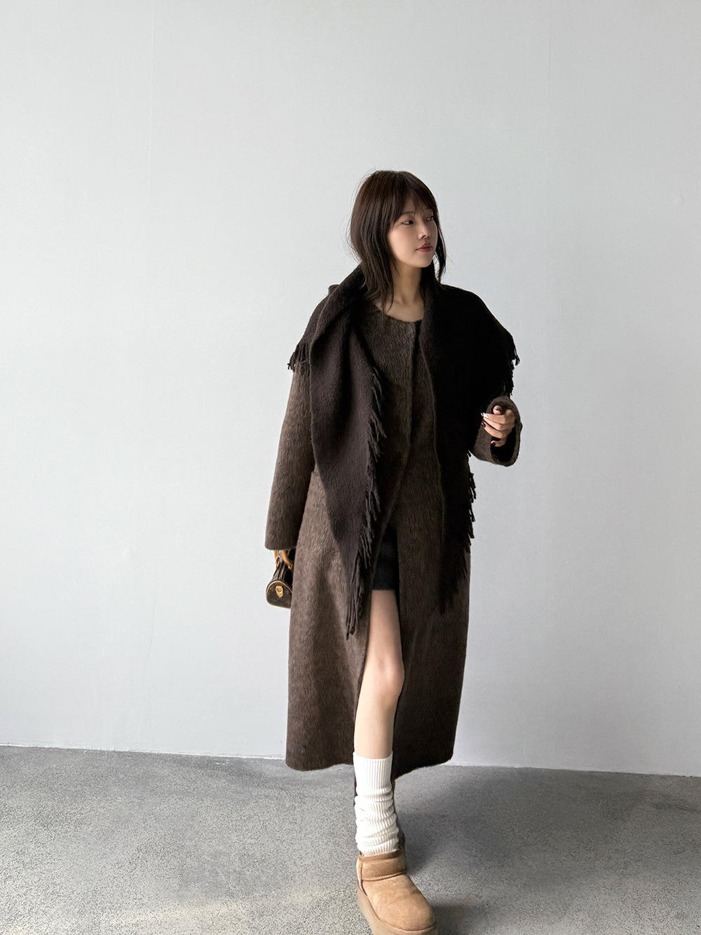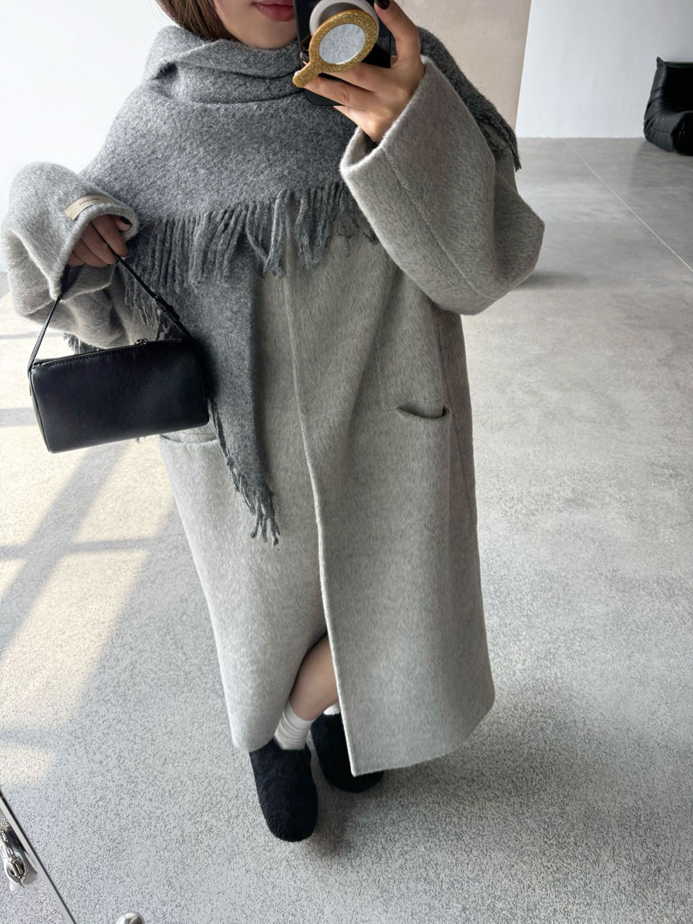 【王琪芝】绵羊毛韩系气质双面呢大衣女配围巾保暖厚长外套WQ086