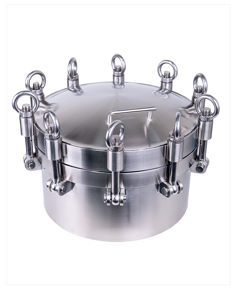 304不锈钢卫生级DN400压力人孔 防压防爆吊环圆形快开人孔盖