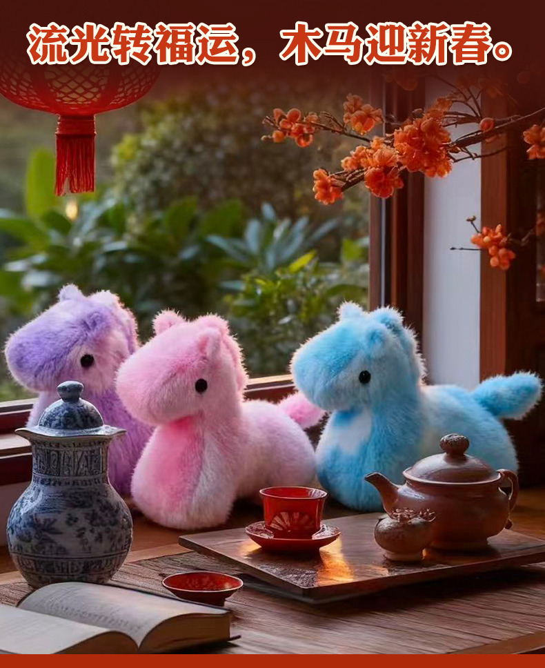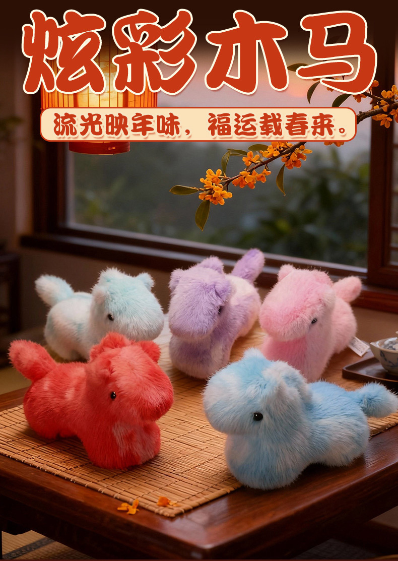 2026年马年吉祥物扎染炫彩马毛绒玩具生肖马属马儿童娃娃玩偶抱枕