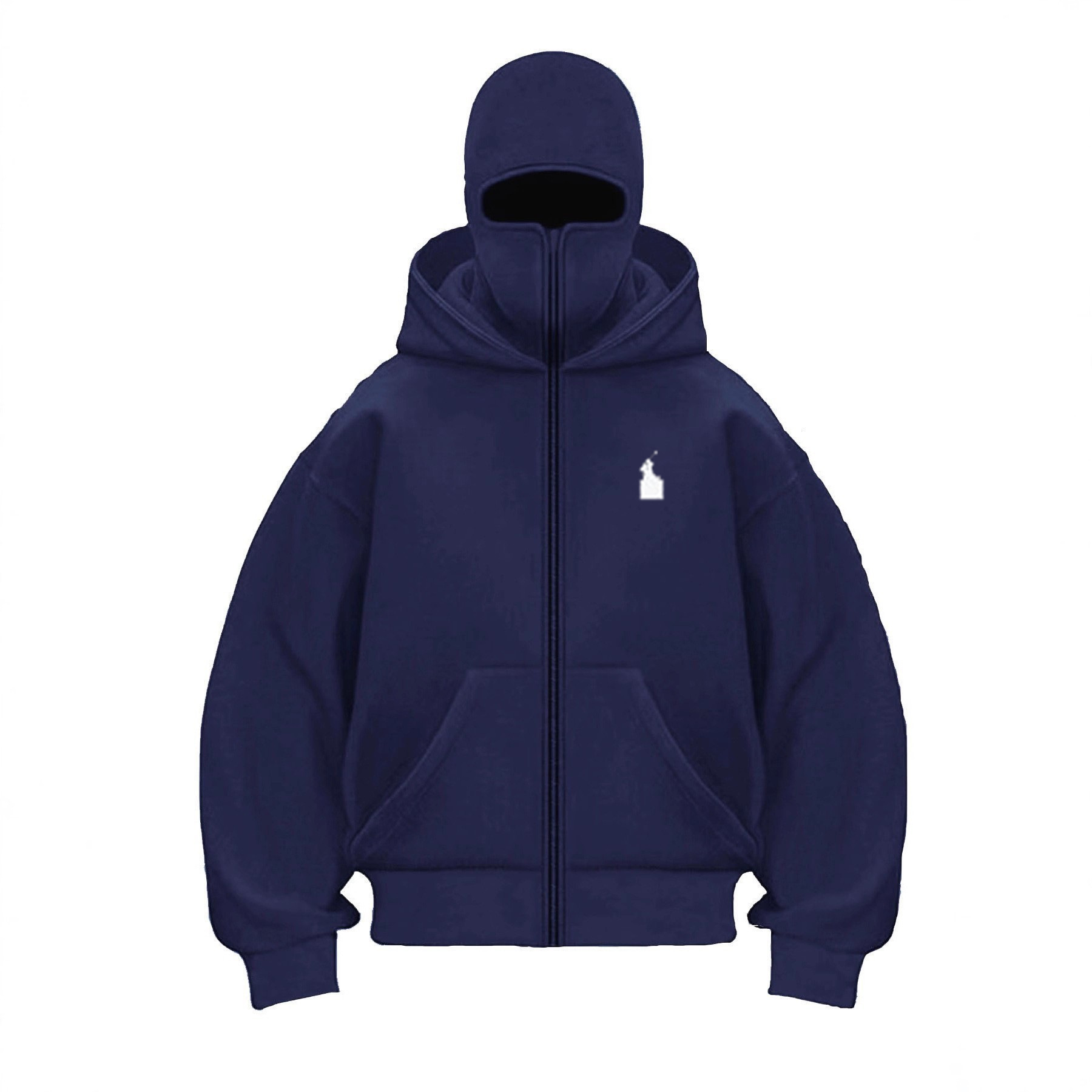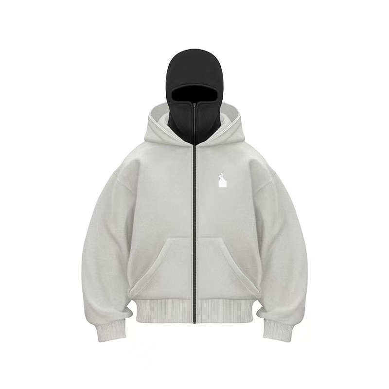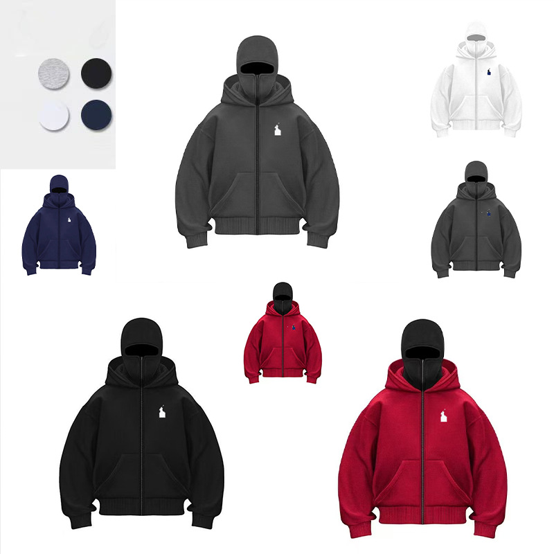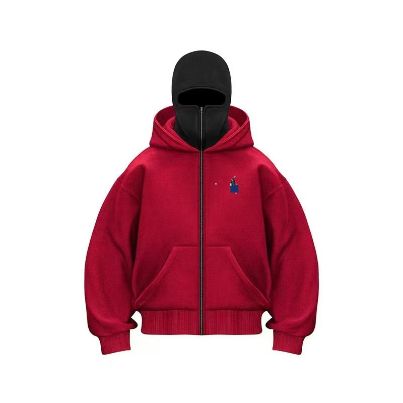 秋季男士拉链小马刺绣开衫蒙面双帽卫衣休闲时尚百搭长袖潮流加绒
